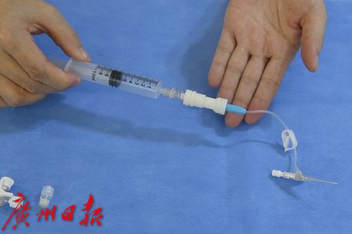 陈瀚熙带领广东省人民医院静脉输液护理用具创新团队设计发明了分隔膜输液接头,这是一个内外螺纹接合式装置。输液结束时,只需拔出输液接头,旋紧内外螺纹约5mm,分隔膜完全碰触,就形成封闭的圆形隔膜,此时接头管腔内会自动产生正压,不必再使用封管液正压封管及使用止血夹,就可以有效消除输液用具拔出时产生的负压,并在管腔内形成有效正压。下次输液开始前,只需旋松内外螺纹,前后隔膜也随之分离,接头管腔内形成负压,负压会自动造成血液回流,不需要再通过回抽血液判断穿刺针是否在血管内。