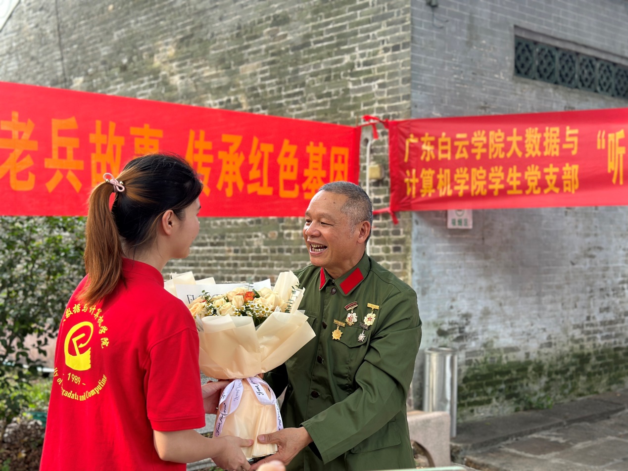 当天,白云区退役军人事务局、江高镇退役军人服务站联合广东白云学院,举办“聆听老兵故事、传承红色基因”活动,广东白云学院近30名学生党员参加了活动。