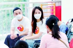 陈泽滨和妻子顾芷畅慰问脑损伤儿童家庭。