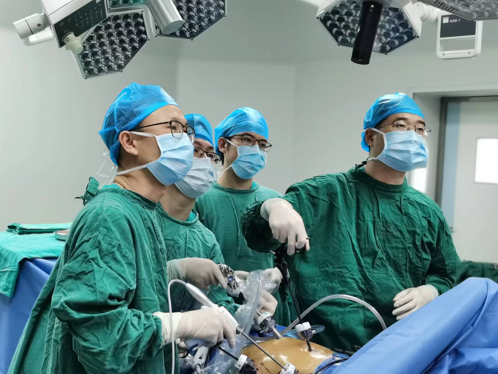 郑于臻(右)和同事为病人实施手术