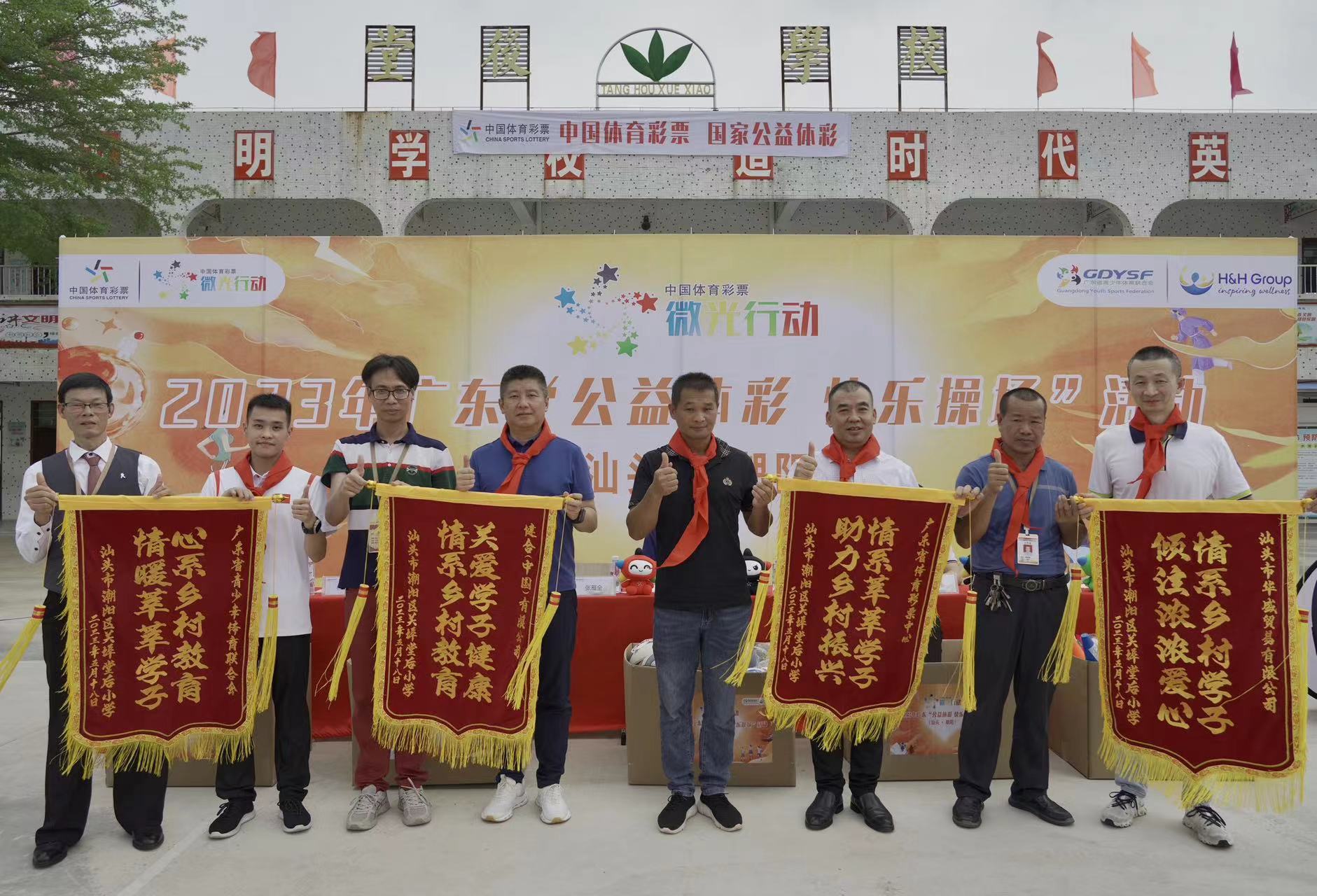 2023年,全新开启的广东“公益体彩 快乐操场”进一步焕发中国体育彩票的温暖微光,率先登陆关埠堂后学校,原广东省体育局青少处处长、广东省青少年体育联合会副会长吕劭华,汕头市体育彩票管理中心主任李建川等领导嘉宾出席了本次活动。