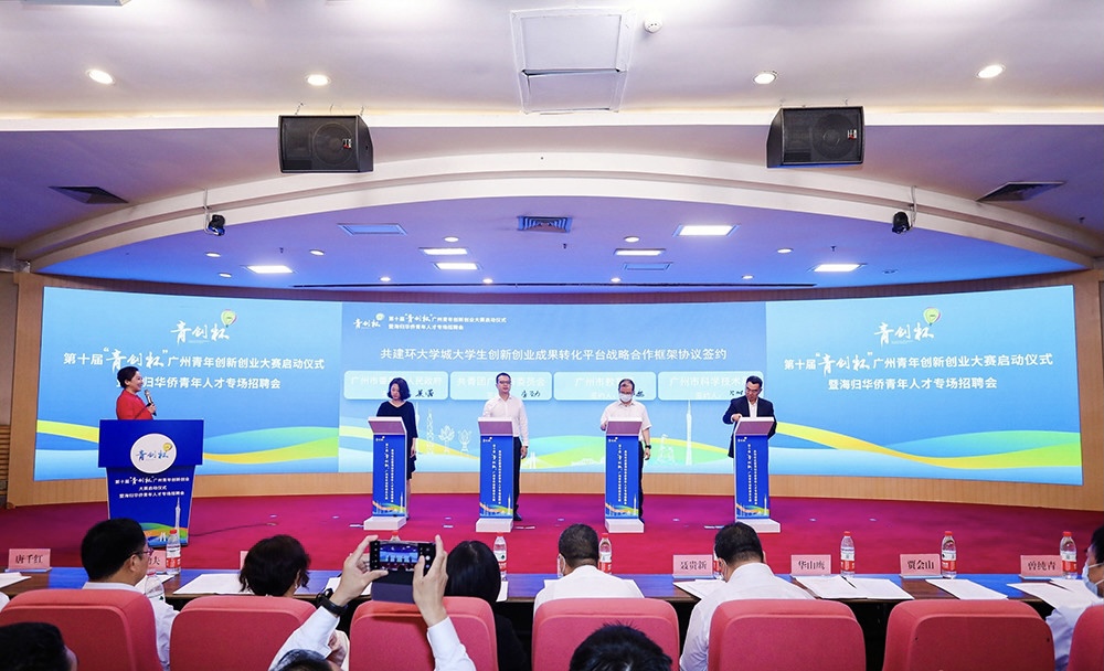 5月18日,第十届“青创杯”广州青年创新创业大赛启动仪式暨海归华侨青年人才专场招聘会在广州大学(广州大学城校区)举行。
