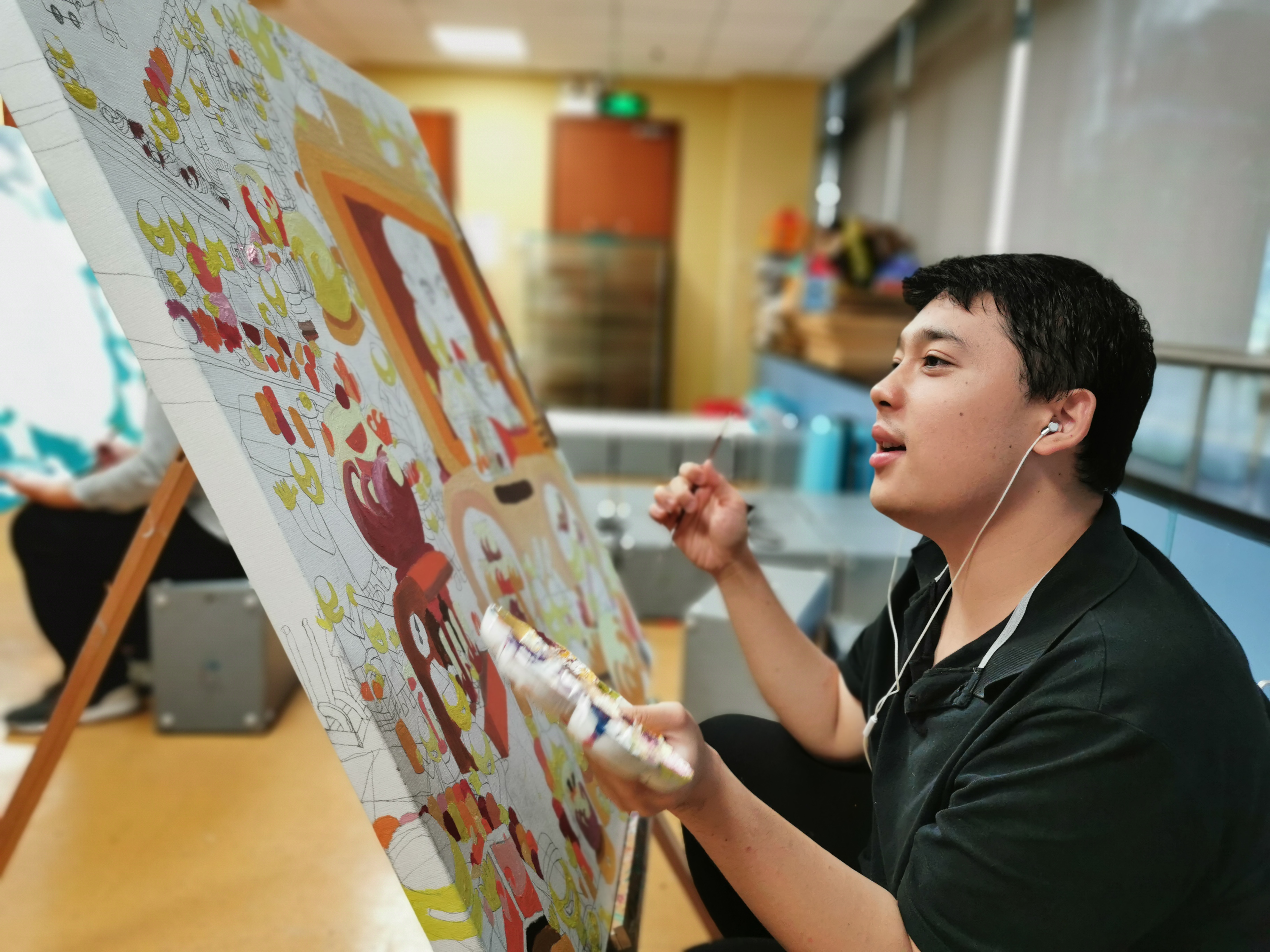 一哲患有自闭症,艺术是他与世界连接的方式。他的美术天赋令人赞叹,在他的画作里,总能感受到丰富的想象力以及对色彩的把控能力。6岁进入广州市少年宫特殊教育部学习艺术的一哲还弹得一手好钢琴,并学会钢琴调音及作曲。