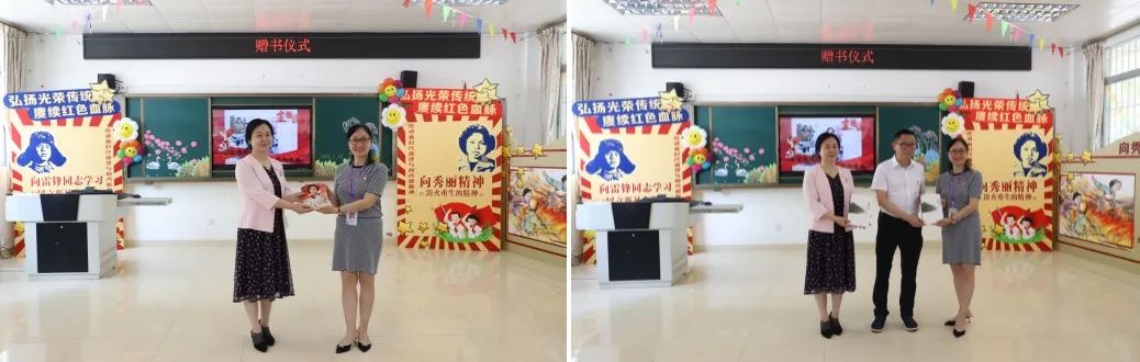 为进一步深化向秀丽烈士精神的传承,宣传沙头故事,让红色文化滋润孩子成长,白云山何济公党委向南双玉小学党支部赠送《向秀丽——勇蹈火海的女英雄》图书,沙头街党工委向白云山何济公党委、南双玉小学党支部赠送《沙头故事》书籍。