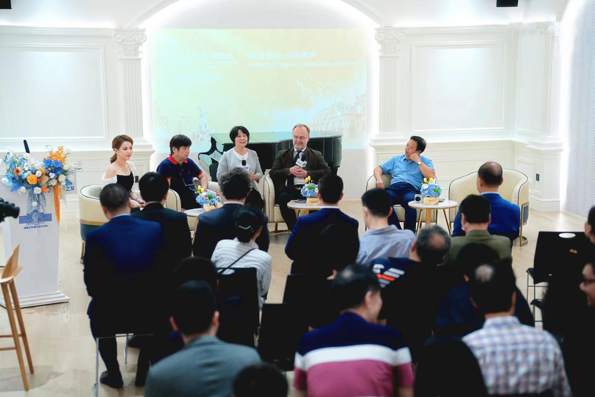 针对乐团行业和乐团教育在新时代下的机遇和挑战等问题,维也纳爱乐乐团前副主席赫尔穆特·采特纳教授,广东省合唱联盟副主席廖原,广州市越秀区少年宫副主任钟光宇展开讨论。