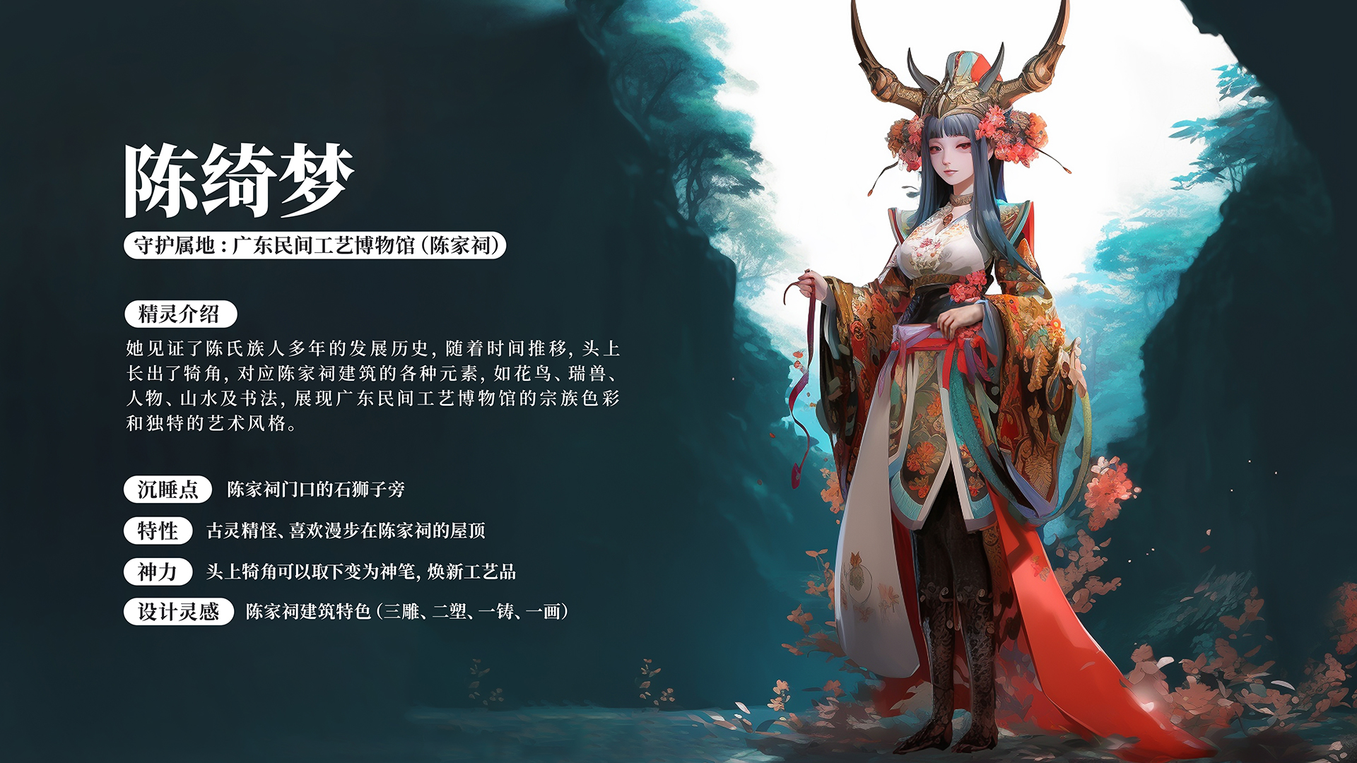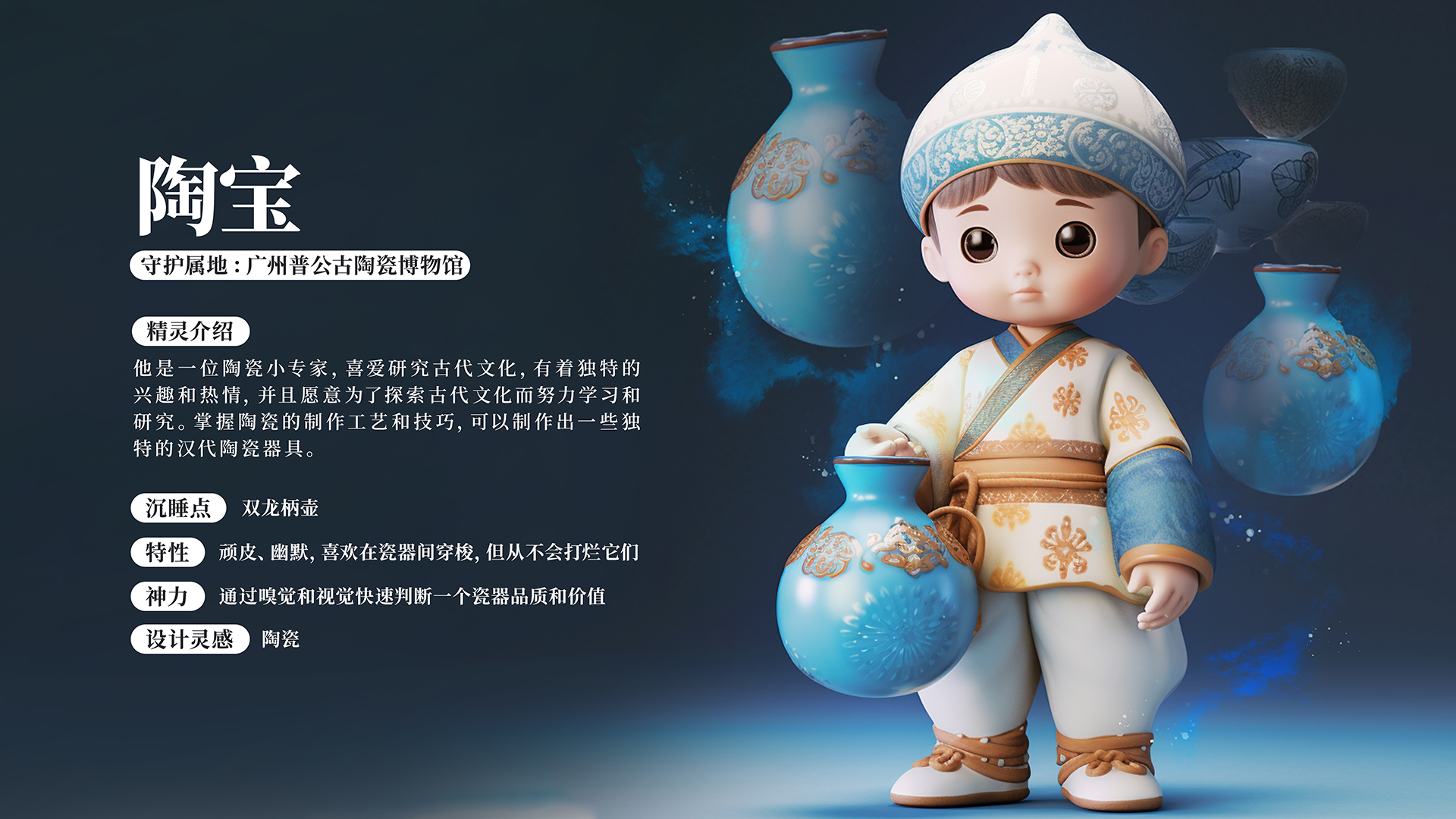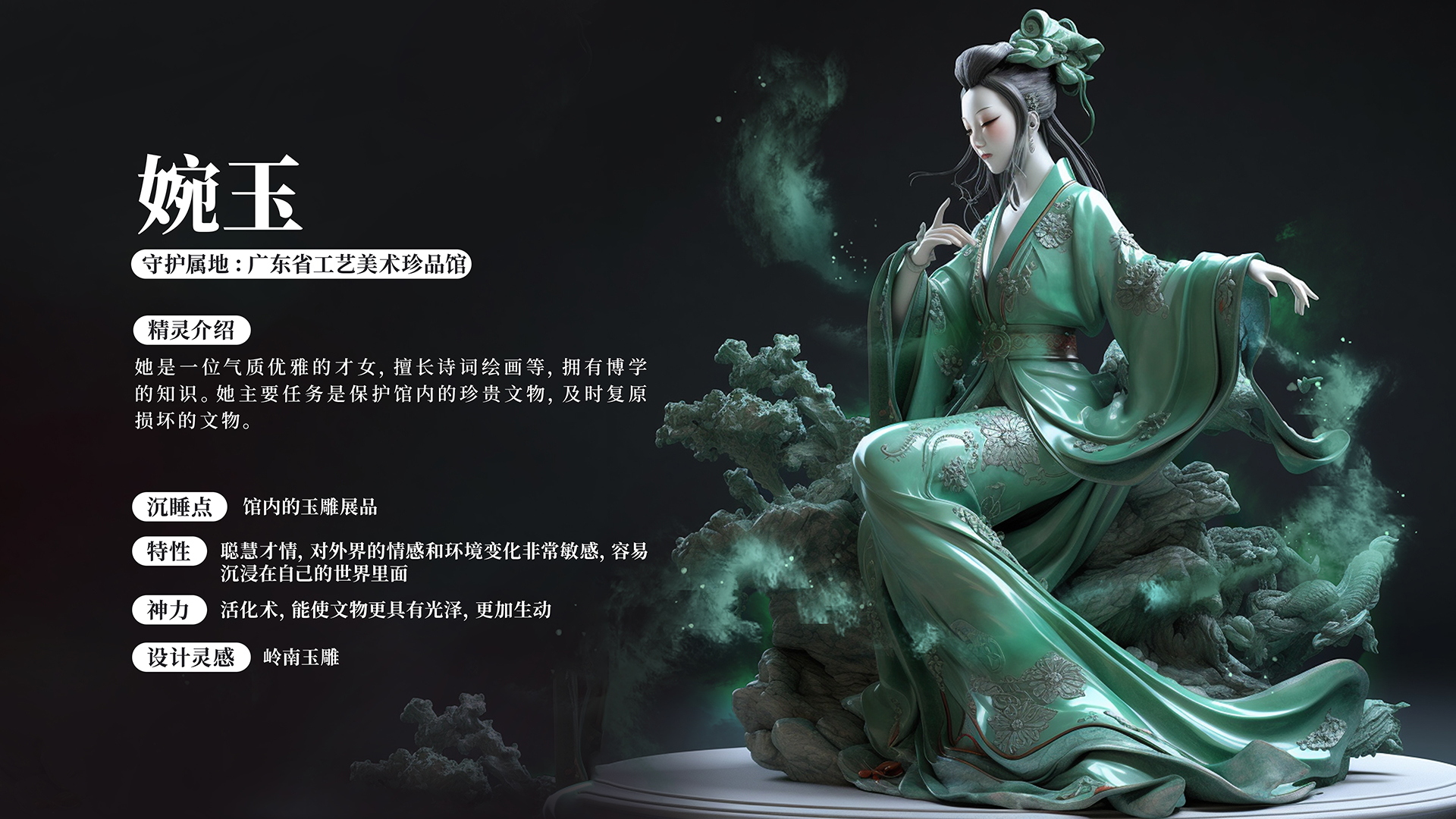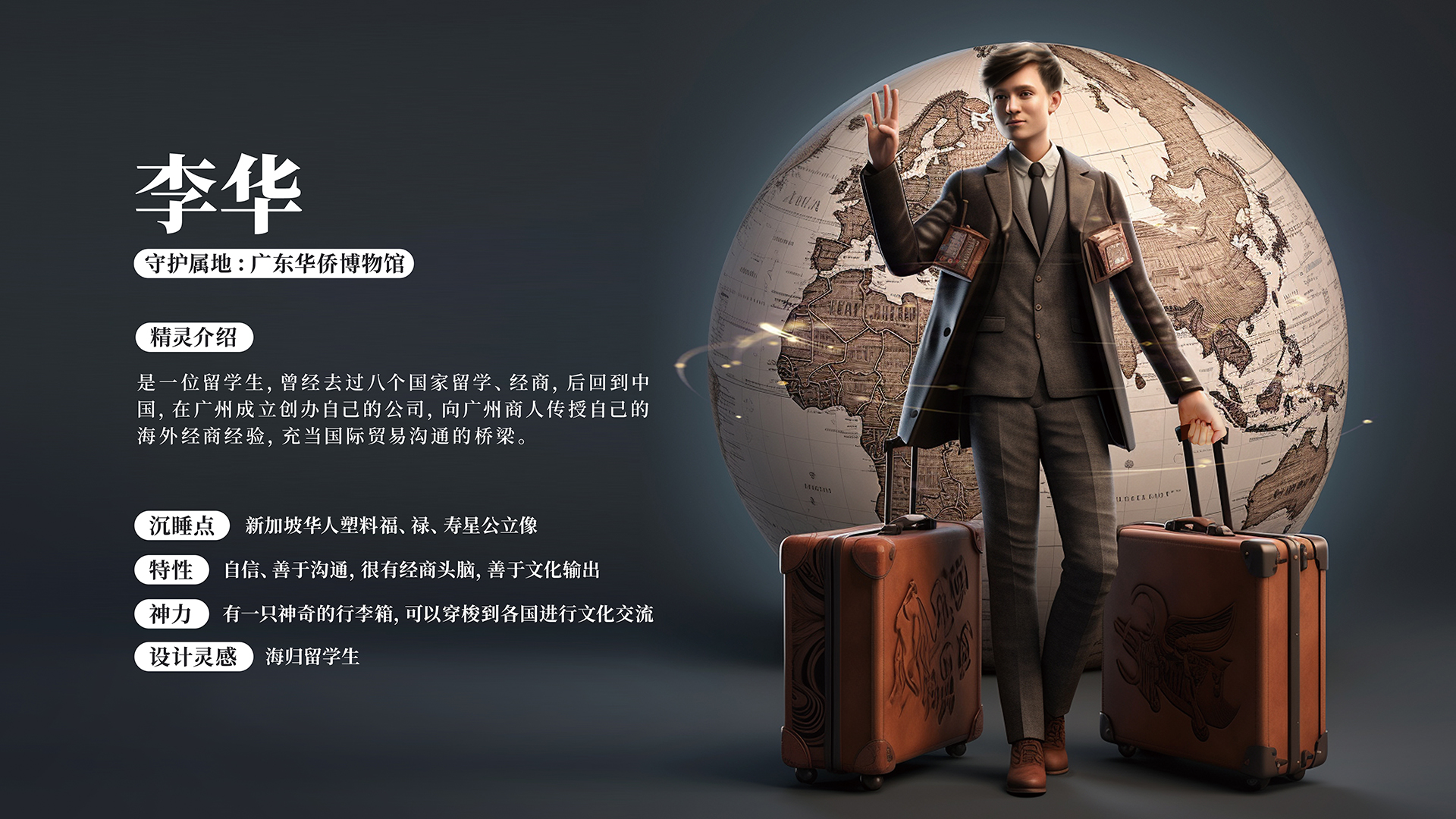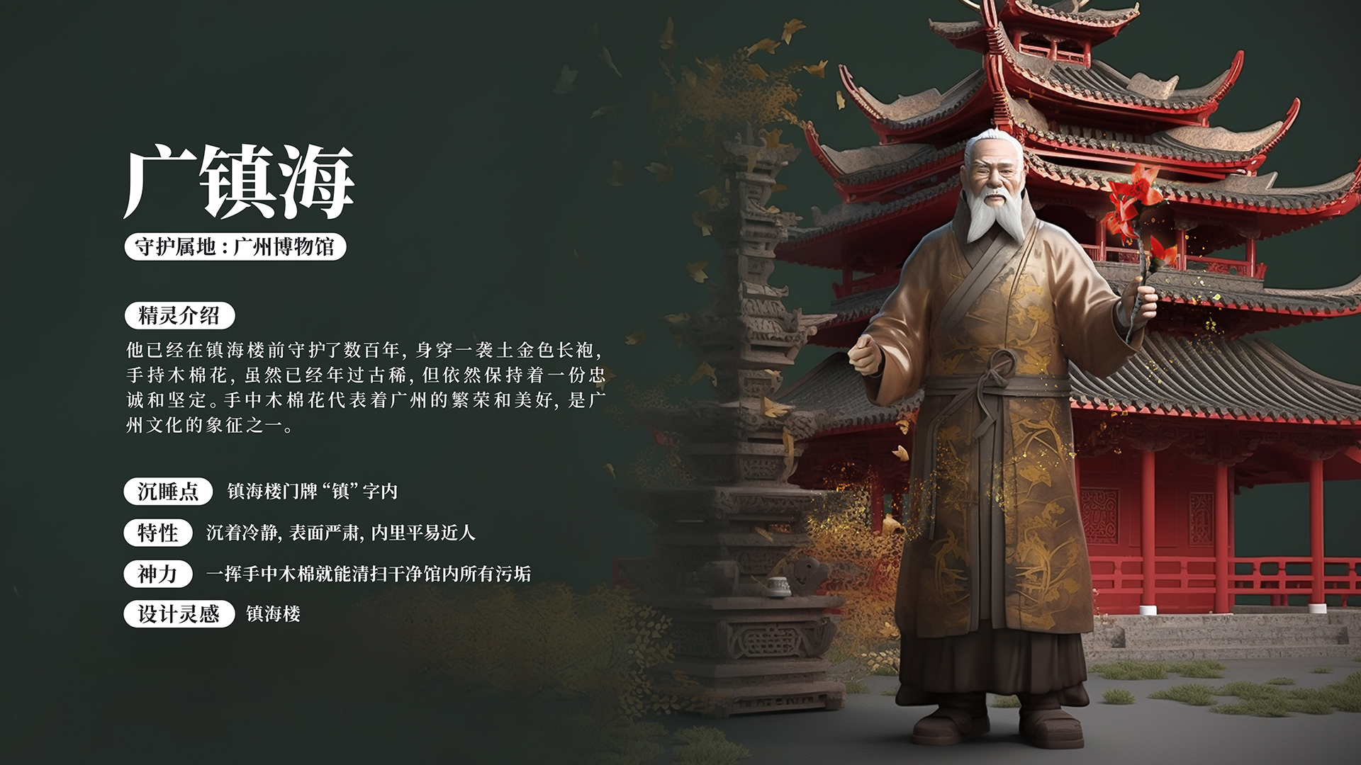 记者看到,展览中“批量”推出的32个虚拟人,在形象设定、场景关联等方面呈现出非常丰富的面貌。当中既有华丽的陈绮梦、秀凤,沉稳的广镇海、邮伯,天真可爱的陶宝、元元,也有清冷的婉玉,神秘的夜灵子,未来感的悠悠,赛博风的老铁头……“他们”具有强烈的人格性,又带有所“生活”的博物馆强烈的印记,如广镇海之于广州博物馆(镇海楼),粤容和之于广东省博物馆,李华之于广东华侨博物馆。