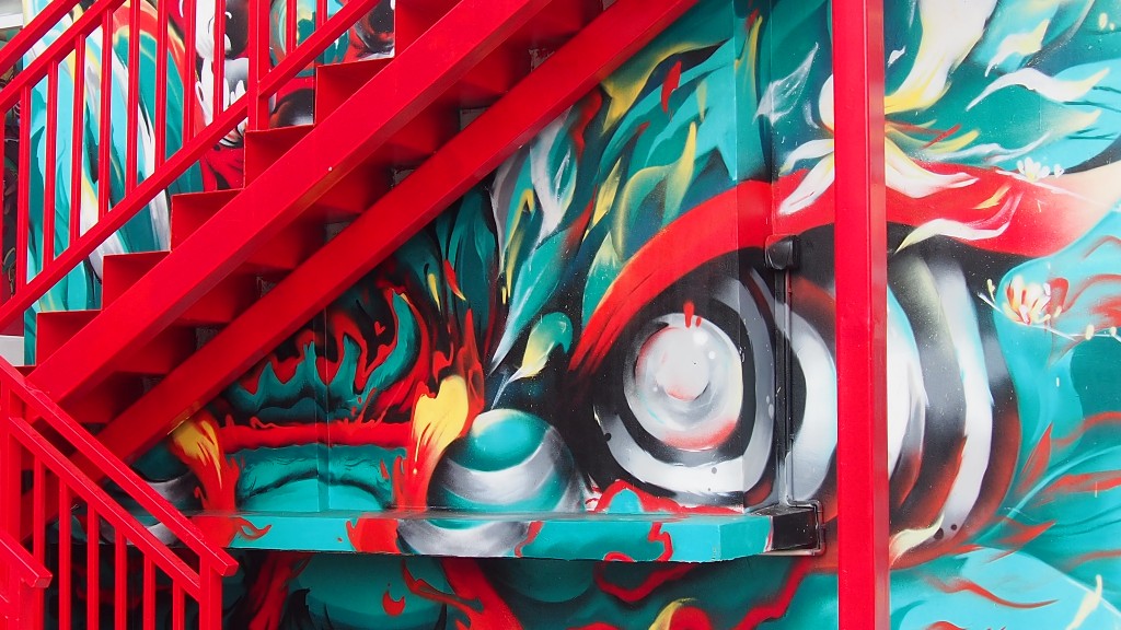 走进馆内,满墙的漫画作品映入眼帘:马克笔勾勒出的诙谐漫画墙巧妙地融合了渔人码头和醒狮元素,营造了独特的氛围。