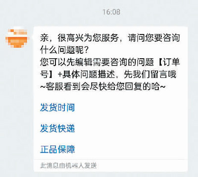 原来,王女士在某电商平台购物,APP显示所购商品几天前已开始派送,但她始终未收到货。她无论是电话联系还是线上沟通,面对的都是智能客服。王女士说,无论用什么措辞表述问题,收到的回复永远是快件正在派送中,“想找个人工客服投诉都费劲儿!”
