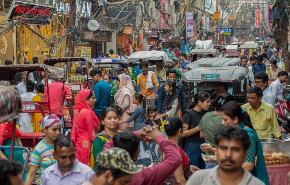 4月26日,人们聚集在印度新德里的一处市场。新华社发(贾韦德·达尔摄)
