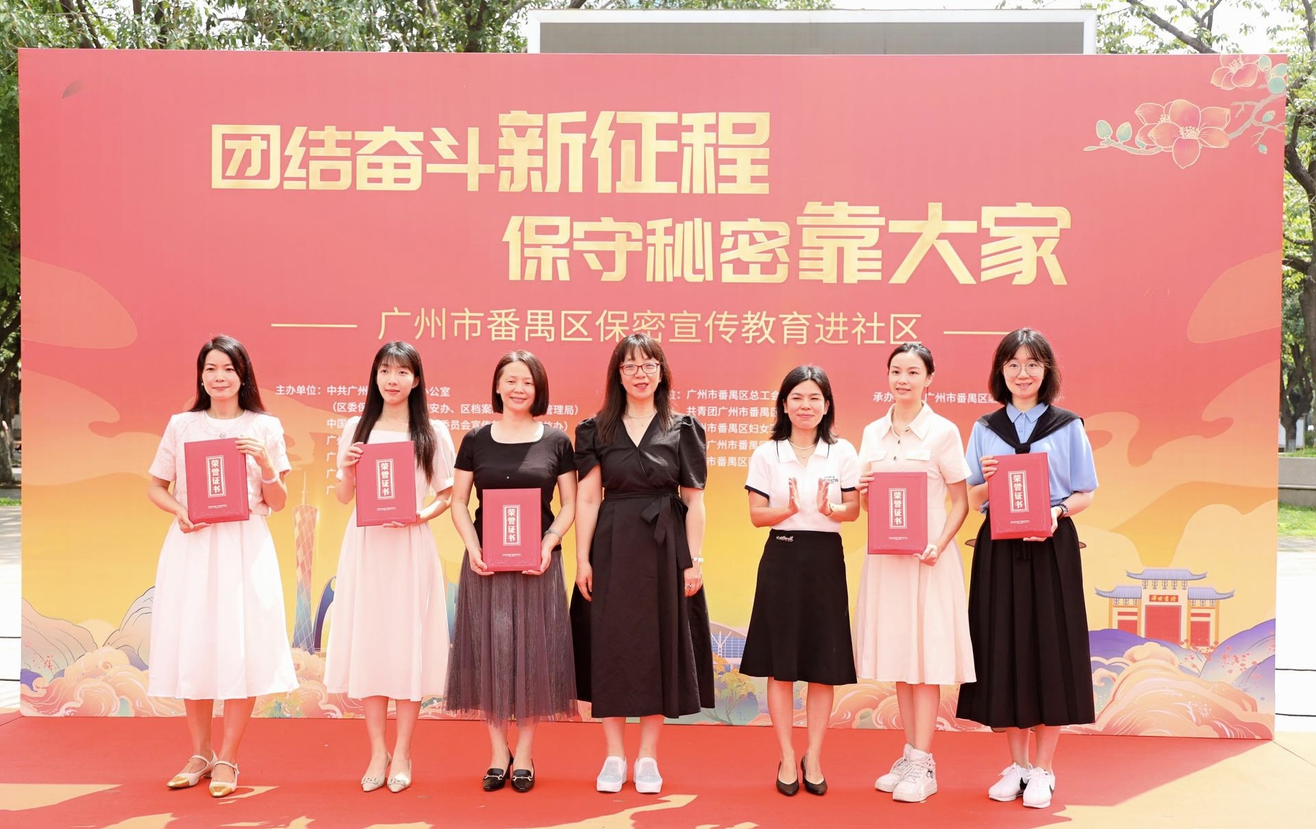 最后,与会领导为番禺区“人人话保密”主题讲述活动和保密教育优秀课例的获奖单位进行颁奖并合影留念。