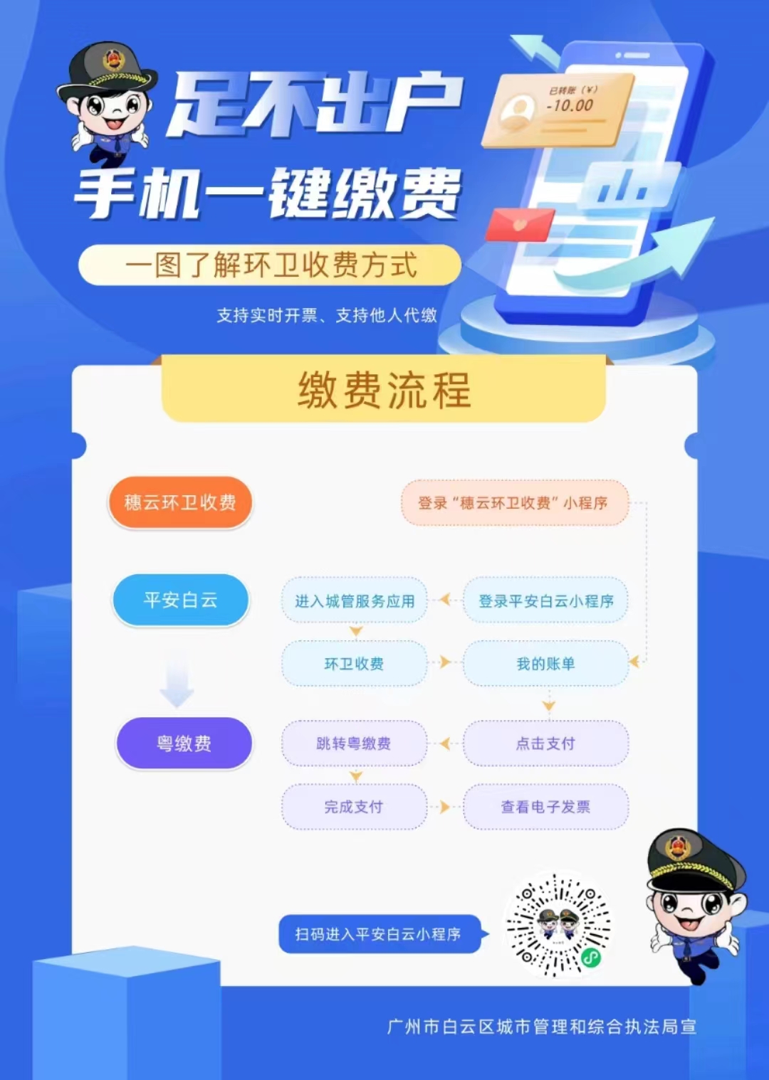 据了解,白云区城市管理和综合执法局持续推进智慧环卫建设,今年4月以来,该局自主研发的全省首个智慧环卫收费系统陆续在全区铺开推广应用。该系统实现线上缴费、电子发票、底数管理等多种功能于一体,可以根据环卫收费数据底数和收费标准,自动计算缴费数额,推送账单给缴费单位和个人,实现环卫费收缴智能化。