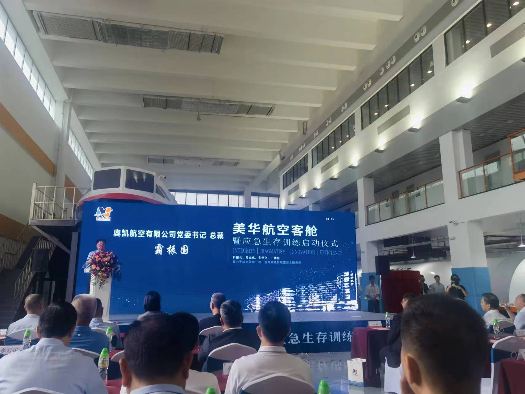 活动现场,在嘉宾们的见证下,美华航空客舱暨应急生存训练启动仪式正式开启,这标志着美华航空客舱培训中心正式成立运营。现场还进行了美华航空与多家航空公司及校企合作业务的签约仪式以及凯航空客舱培训基地挂牌仪式,标志着奥凯航空客舱培训基地在美华航空正式启动。活动最后,美华航空和奥凯航空客舱教员进行了客舱应急撤离的演练。