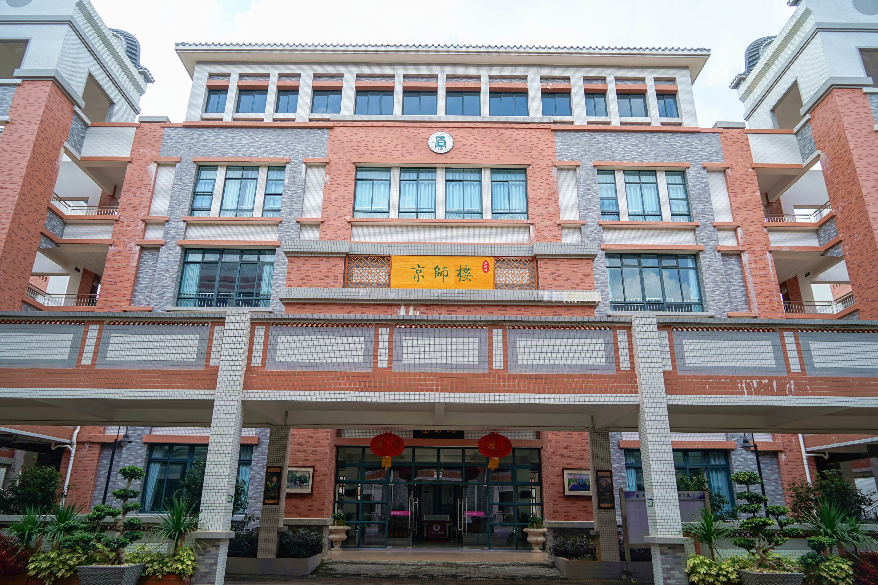 学校背靠青梅山,前依南岗河,环境优美,山清水秀。校园内群楼林立,岭南与徽派建筑风格兼容并蓄、整体和合,颇具书院风范,是学子潜心读书的好地方。学校有国际标准的50米恒温游泳馆、400米田径运动场,标准实验室、智能图书馆、心理训练室等教学设施一应俱全,一流的食宿条件和贴心服务为学生学习、生活提供高品质保障。