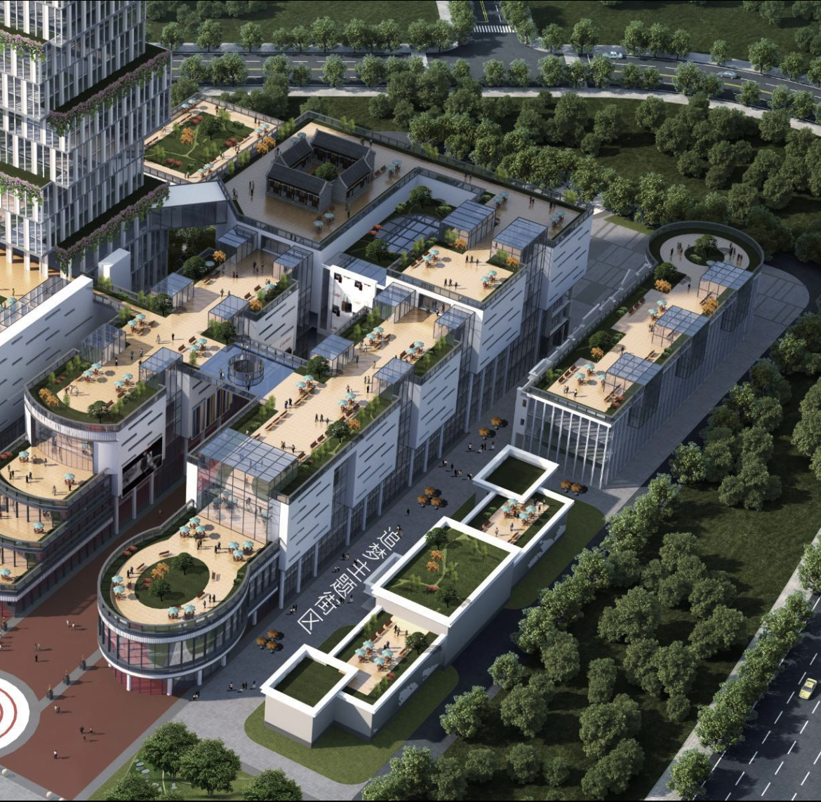 项目以电影场景化为主要设计构思,形成三横两纵的街区式布局;引用电影博物馆的概念,利用竖向空间及屋面花园,形成立体的空间布局。其中,位于天台的“天空之城”,在此可体验西关商贾繁华景象,欣赏粤剧电影;位于地面的追梦街区,通过年代电影场景复原,营造出民国、解放后等时代景象;位于负一层的“广州记忆 匠心广州”地下街区,集合岭南非遗文化、美食文化,还原老广记忆。