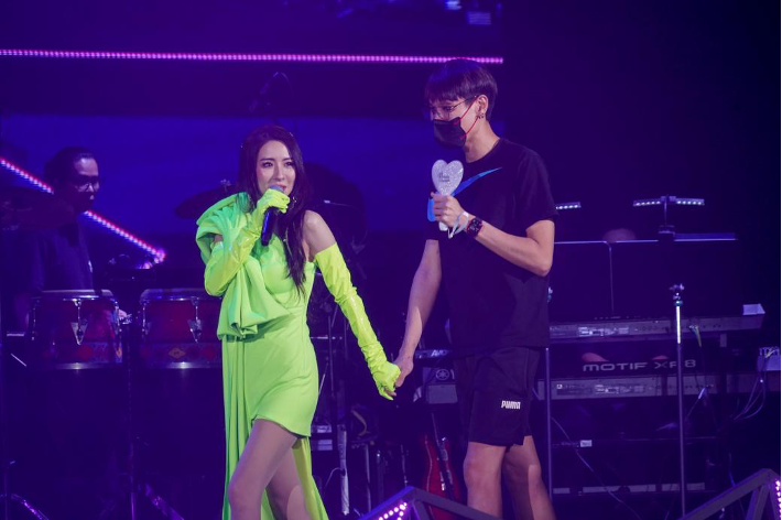 在520这个日子,有歌迷对Hana大叫“我爱你”。相隔四年再开唱,她多谢乐迷陪她度过一个这么浪漫的夜晚。