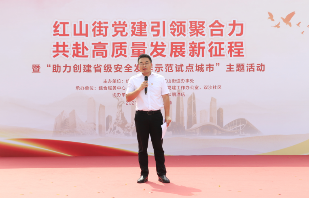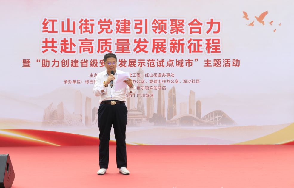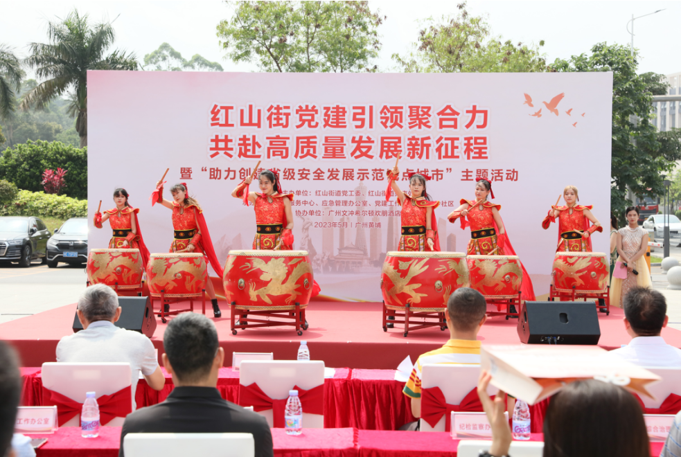 为推动实现黄埔红山经济社会高质量发展,5月16日,“红山街党建引领聚合力 共赴高质量发展新征程”暨“助力创建省级安全发展示范试点城市”主题活动在希尔顿欢朋酒店外广场举办,红山街道辖内70多家企业及学校代表齐聚一堂,共谋高质量发展大计,为加快建设科教智慧新城和智慧数字航贸创新中心出谋划策。