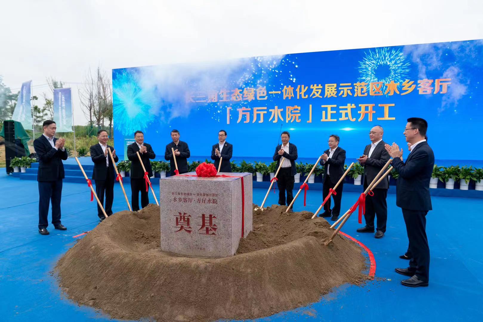 24日上午,长三角一体化示范区水乡客厅“方厅水院”项目破土动工。此次开工的“方厅水院”是水乡客厅“一点一心、三园三区、三道多村”空间格局中的“一点”,位于上海江苏浙江两省一市的交汇点上,是长三角一体化的标志性功能场所,在水乡客厅建设中具有画龙点睛的作用。