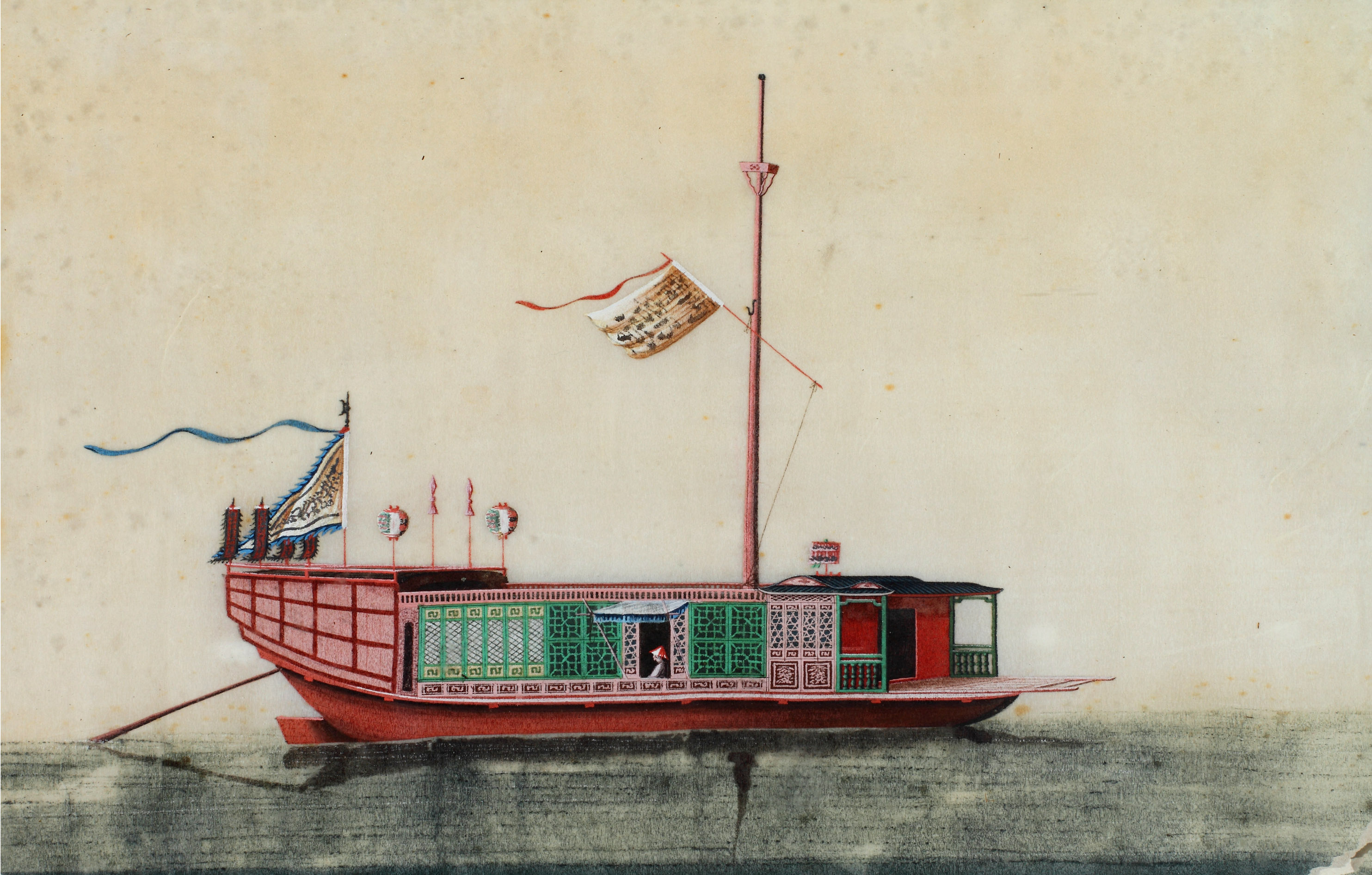 此次展览让十三行博物馆馆藏通草画登上游船“动”起来、“活”起来。“19世纪30年代,十三行商馆区大小画室多达30余家。通草画画师借鉴了一些西洋技法,不同于传统的写意风格,更注重写实,可以说记录了当时十三行及珠江沿岸的风土人情。”广州十三行博物馆陈列部展览设计师刘益表示。19世纪港口风景图(十三行商馆区)、两广部堂官船图、养鸭船、龙舟图、园景仕女图(百花亭)……此次展陈的通草画中有许多描绘珠江船舶及珠江沿岸岭南风光的内容,让游客在品味历史的同时,也可欣赏现代繁华的珠江两岸风光,在古今对照中体验独特广州商都魅力。