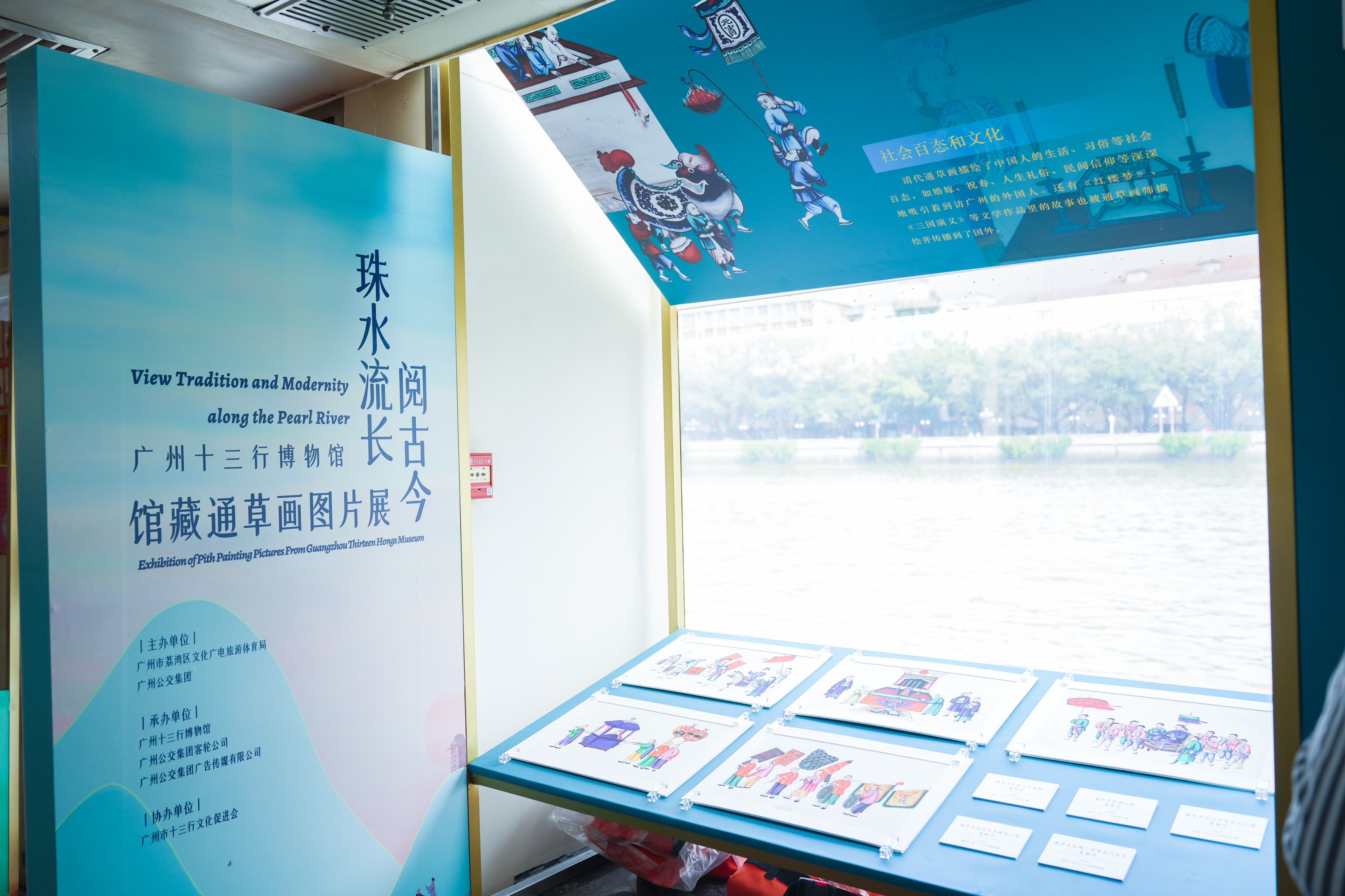 5月25日,“珠水流长阅古今”—广州十三行博物馆藏通草画图片展在西堤码头穗水巴19船正式开幕。围绕今年国际博物馆日的主题“博物馆、可持续性与美好生活”,荔湾区首次尝试与广州市公交集团客轮公司合作策展,在珠江夜游的游轮上举办展览。本次展览精选来自十三行博物馆的42件精美通草画复制件展出,内容主要包括通草画兴衰、通草画主题(广州及珠江风貌、岭南庭院、珠江帆影、影响世界的中国商品、多姿多彩的人物形象、社会百态和文化、动植物、画室画家等),多角度展示清代广州自然及人文风貌,再现19世纪海上丝绸之路的广州故事。