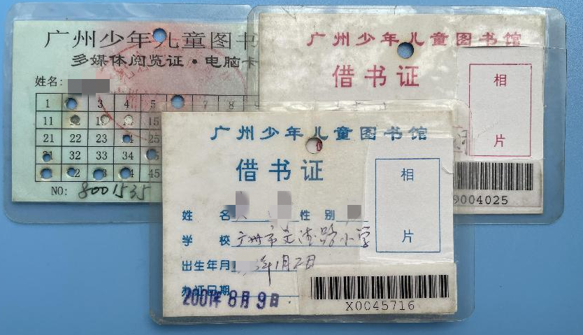 在广州少年儿童图书馆沿江馆和海珠分馆办理的含有押金的旧读者证持有者。