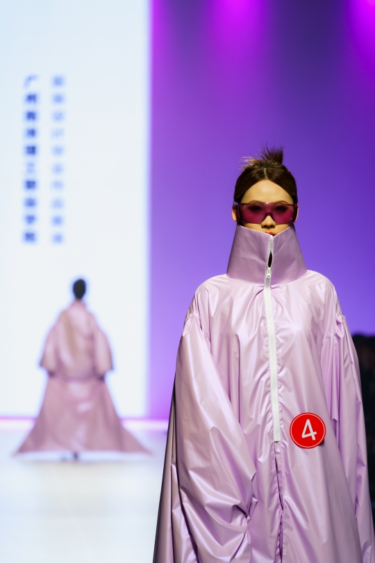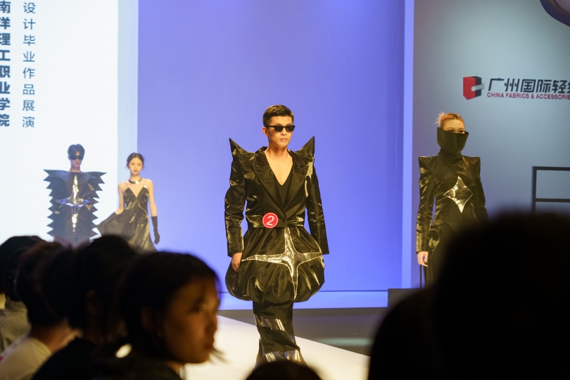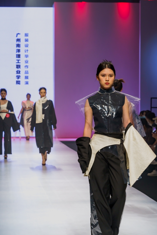 5月25日,中国(广东)大学生时装周广州南洋理工职业学院服装专业毕业作品展演在广州国际轻纺城举行。6号选手陈紫莹设计的作品《都市部落》夺得本场大赛一等奖。