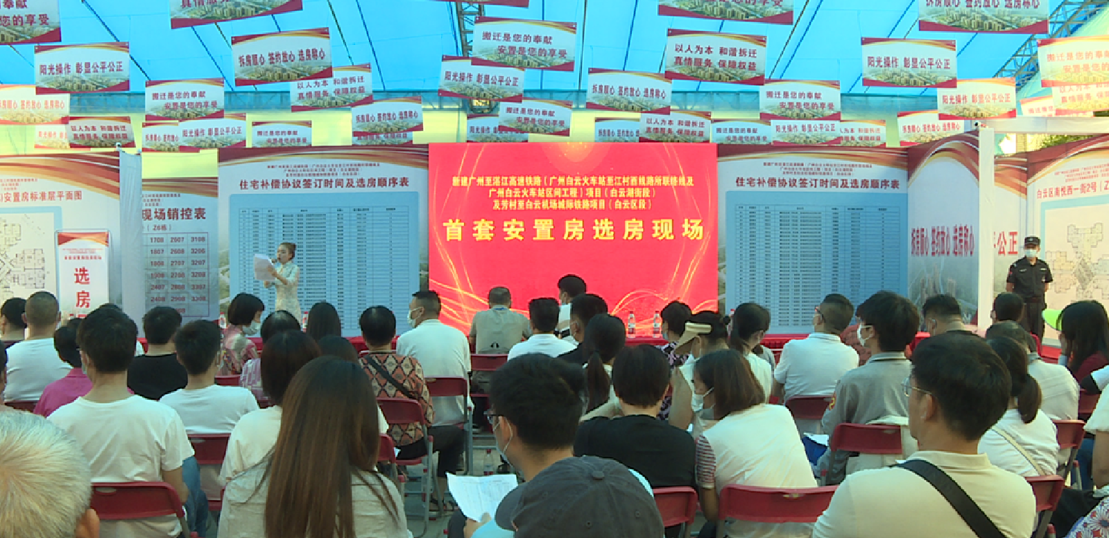 5月25日,广州市白云区白云湖街完成广湛高速铁路、芳白城际征地项目涉征拆群众安置房选房活动。按照“先签先选”的原则,两个项目共60户家庭完成了首套房的选房,主要涉及大冈、龙湖和夏茅三个经济联社。