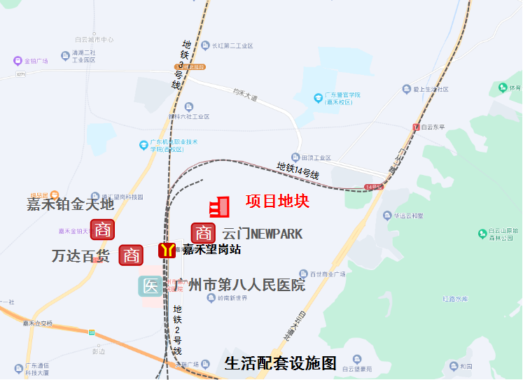 地块周边建有多个住宅区,生活配套已十分完善。商业方面已有云门NEWPARK、嘉禾铂金天地等。而教育医疗方面,周边已建有广州市交通运输职业学校、华师附中新世界学校、广州市第八人民医院等。同时在该地块西侧,还规划有一所公办九年一贯制学校,计划落地市属以上名校。