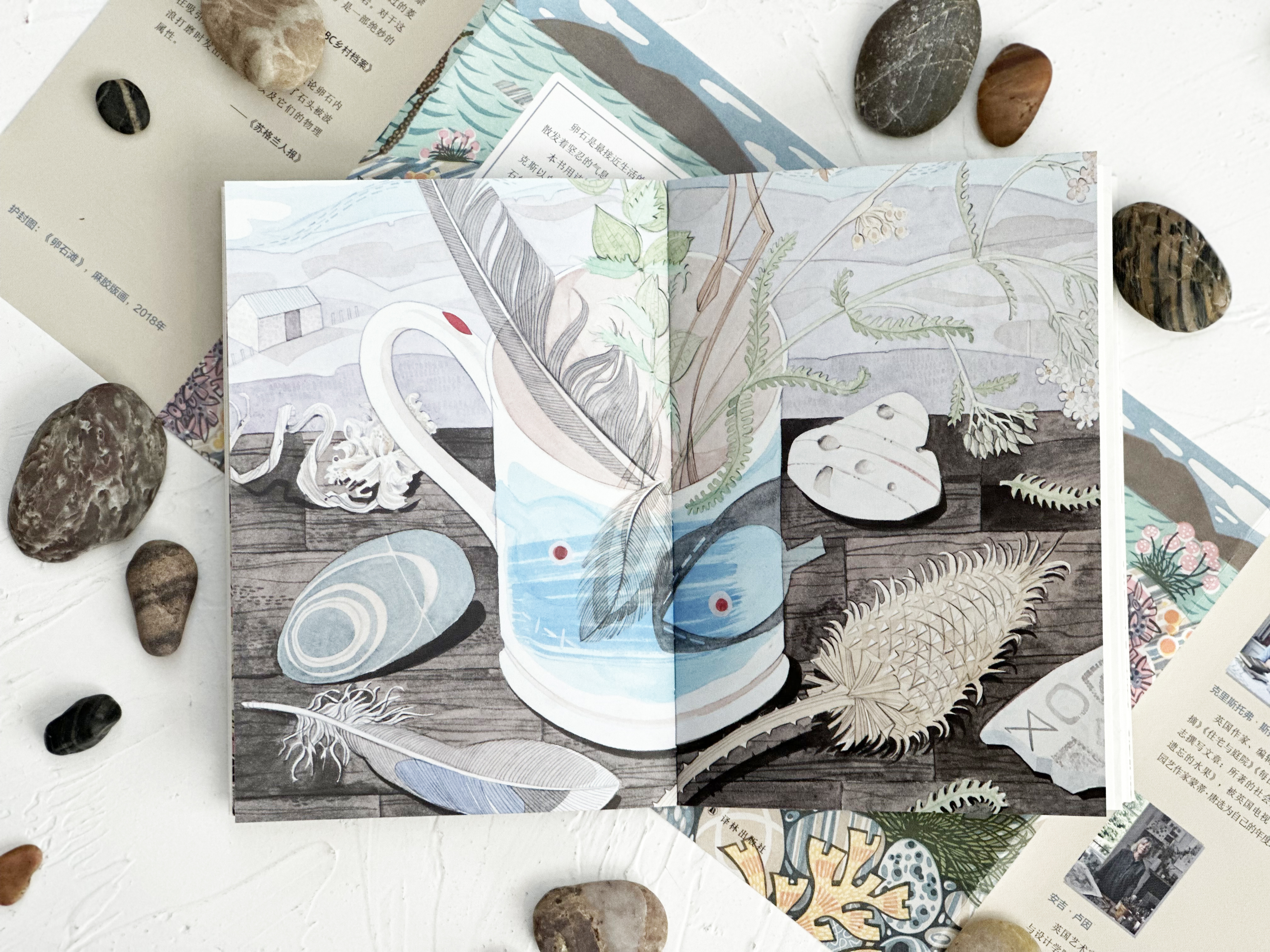 《卵石之书》为全彩印刷,书中收录了艺术家安吉·卢因创作的一系列版画、水彩画。这些作品风格清雅而洗练,富有浓郁的装饰趣味,提升了本书的艺术性和观赏性。