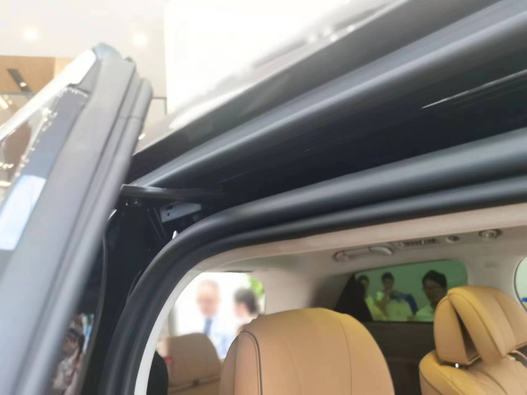 这里的滑轨可以分成座椅滑轨和车门滑轨来说。首先是座椅滑轨,长度达到1600毫米,调节空间相当大,如果后排不坐人的时候,把滑轨拉到最后,再配合中排那个超级舒适的座椅,睡一觉估计都舒服不想起床。其次是车门滑轨,腾势D9采用了滑轨内置的设计,好处在于密封性能更好,防渗水和隔音效果都更好;另外,万一发生碰撞时,侧滑门还会自动解锁,保证乘客能及时逃生。