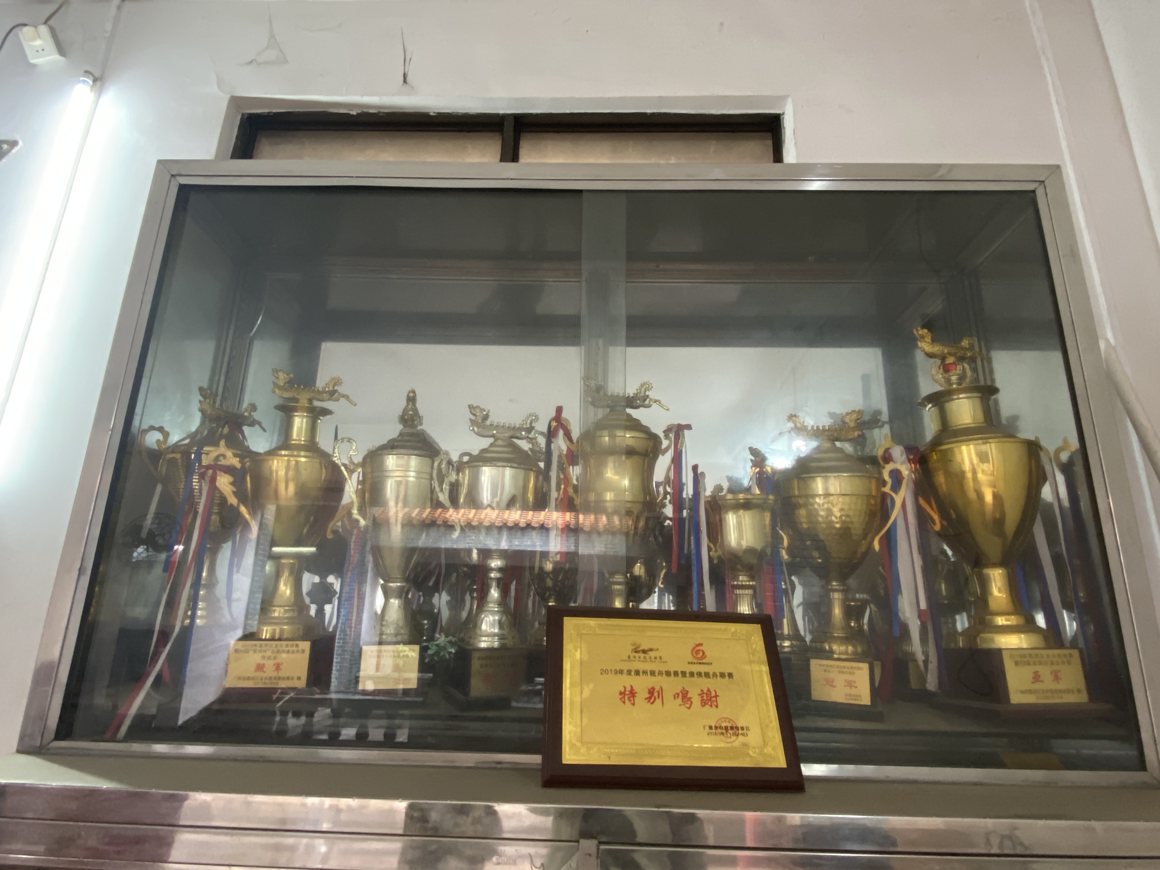 荔湾区海龙街道龙溪村河涌纵横,平州河、花地河、大沙河流经,塑造了典型的岭南水乡和水乡人熟悉水性的特点。龙溪村包括沙溪、大沙、蟠龙、南边、凤池五个自然村。其中,凤池村龙舟队在广州各村享有威名,曾先后拿下2016年广州国际龙舟邀请赛彩龙竞艳比赛一等奖、2018年荔湾区龙舟邀请赛暨53届沙溪龙舟景亚军等成绩。大大小小的奖杯在凤池村林氏宗祠的玻璃展柜里挤挤挨挨。“还有很多,放不下,起码有60多个奖杯。”村中长老“成哥”自豪地说,今年凤池龙舟队将参加今年6月23日举办的荔湾区龙舟邀请赛暨龙溪沙溪58届龙舟景,“虽不是‘志在必得’,但奔着第一名去的。”