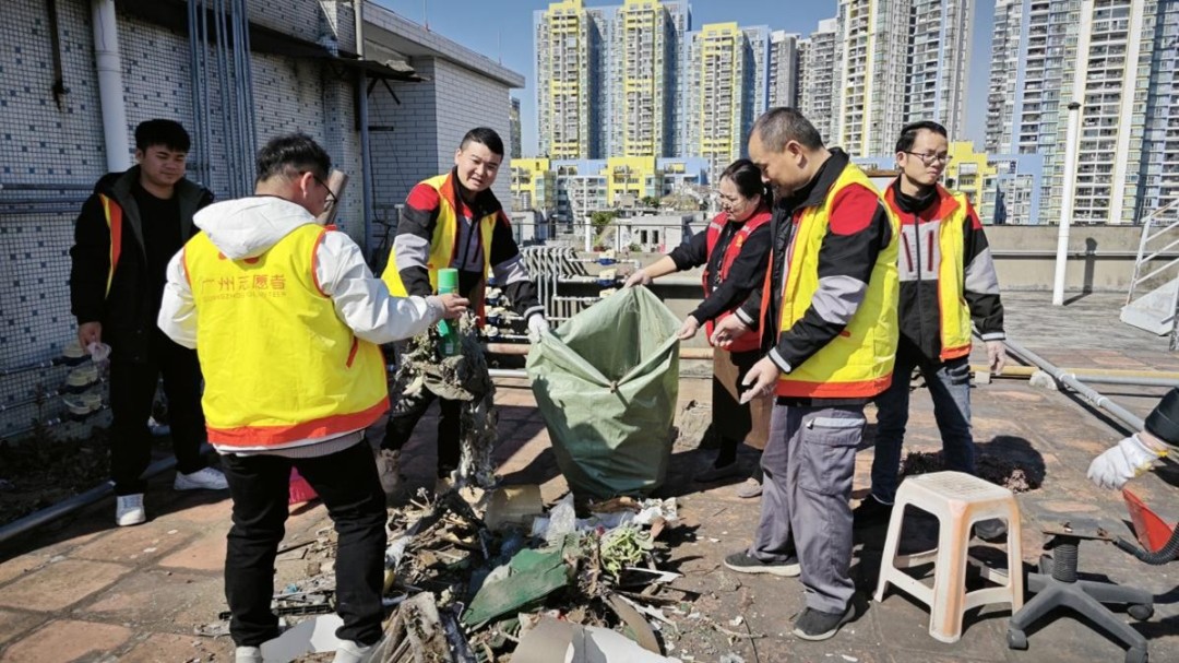 海珠区各社区不满足于单向的关爱服务,而是注重挖掘新就业群体的内生动力,鼓励他们从被服务者转变为服务者,实现身份的蜕变与社区认同的深化。在昌岗街道,由外卖骑手组成的"丰小哥微光志愿服务队"已成为社区治理的新生力量。他们利用配送间隙,积极参与地区环境卫生整治,不仅清理了街道上的生活垃圾,还细致入微地清除了绿化带内的杂物,并妥善处理了居民楼天台的积水问题。