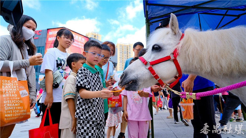 小朋友排队喂小马