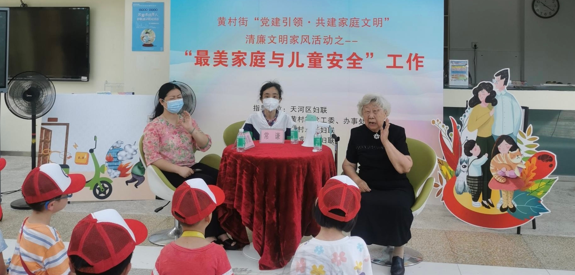 5月30日, 在“六一”国际儿童节即将到来之际,广州市天河区黄村街党工委、办事处主办,黄村地区妇联承办的黄村街“党建引领·共建家庭文明”清廉文明家风活动之——“最美家庭与儿童安全”工作在天河区黄村街康城社区开展。该社区是黄村街儿童之家建设示范点、曾获省十大最美儿童之家称号。