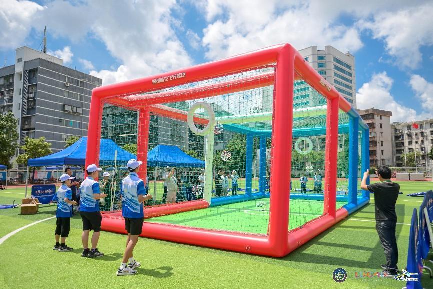 活動當天上午,無人機足球團體對抗賽總決賽率先上演,來自各分站賽選拔出來的優秀隊伍,角逐前三名。球形無人機在選手們的操控下你追我趕,「連球帶機」進入球門,賽況緊張。除了比賽,現場還有三模模型拼裝、遙控實操體驗、360度飛行器等11個科技體驗項目,讓學生在觀賞比賽之餘,更深切感受科技帶來的樂趣。