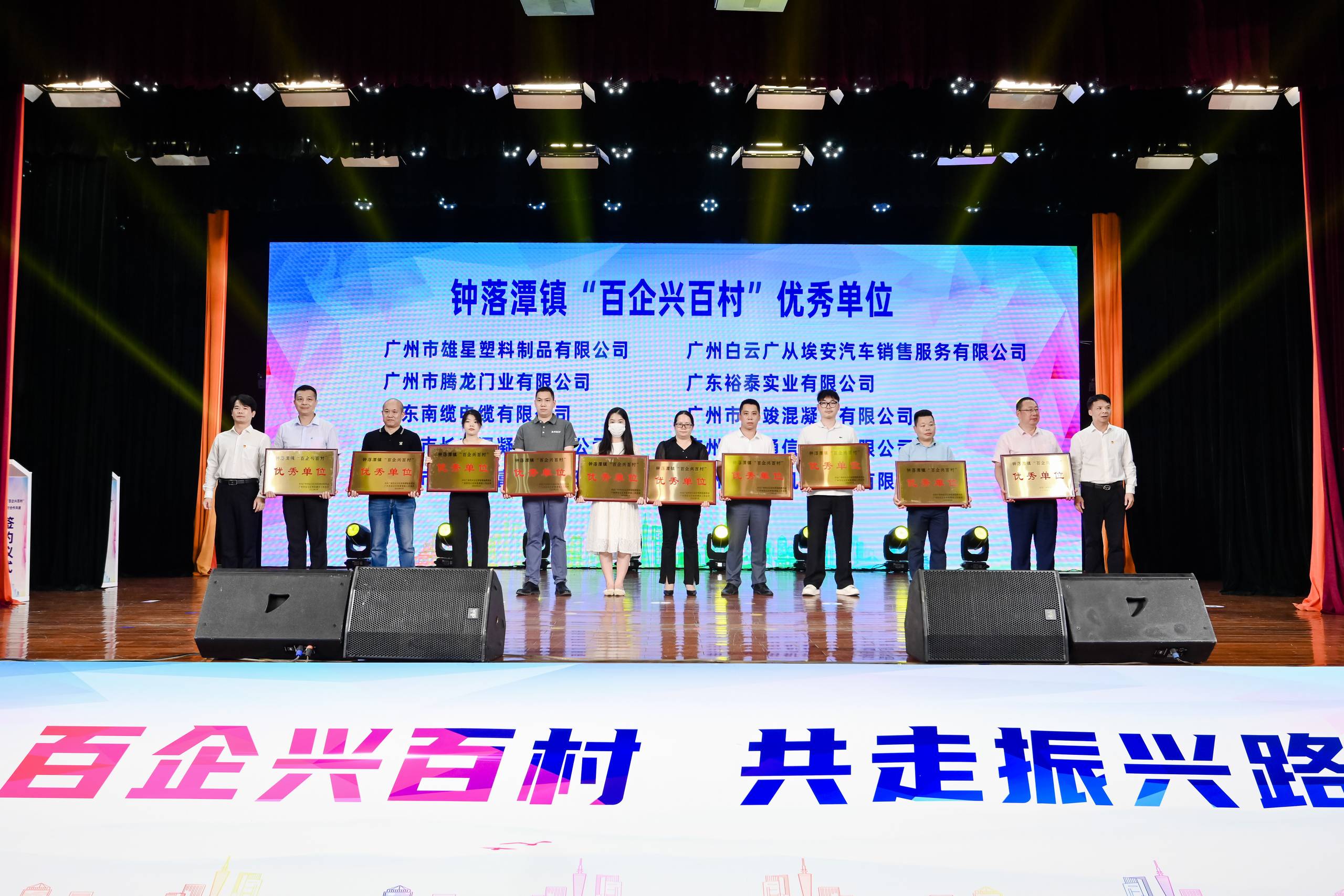 签约仪式前,钟落潭镇向辖内10家企业代表、5家银行、5家高校颁发“钟落潭镇‘百企兴百村'优秀单位”荣誉牌匾,表彰其“热爱家乡、建设乡村”的时代担当。
