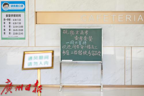 广东实验中学食堂门口的小黑板提示同学们食堂已推出“高三专窗”。