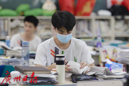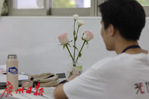 教室里,一位省实的高三同学桌上摆放着鲜花,让自己在最后冲刺阶段拥有好心情。