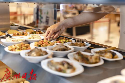 同学们按照自己的喜好取餐。
