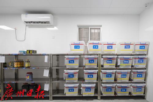 后厨储藏室分类摆放明确整齐。