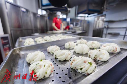 厨房的另一端,师傅们正在为学生们准备面点。