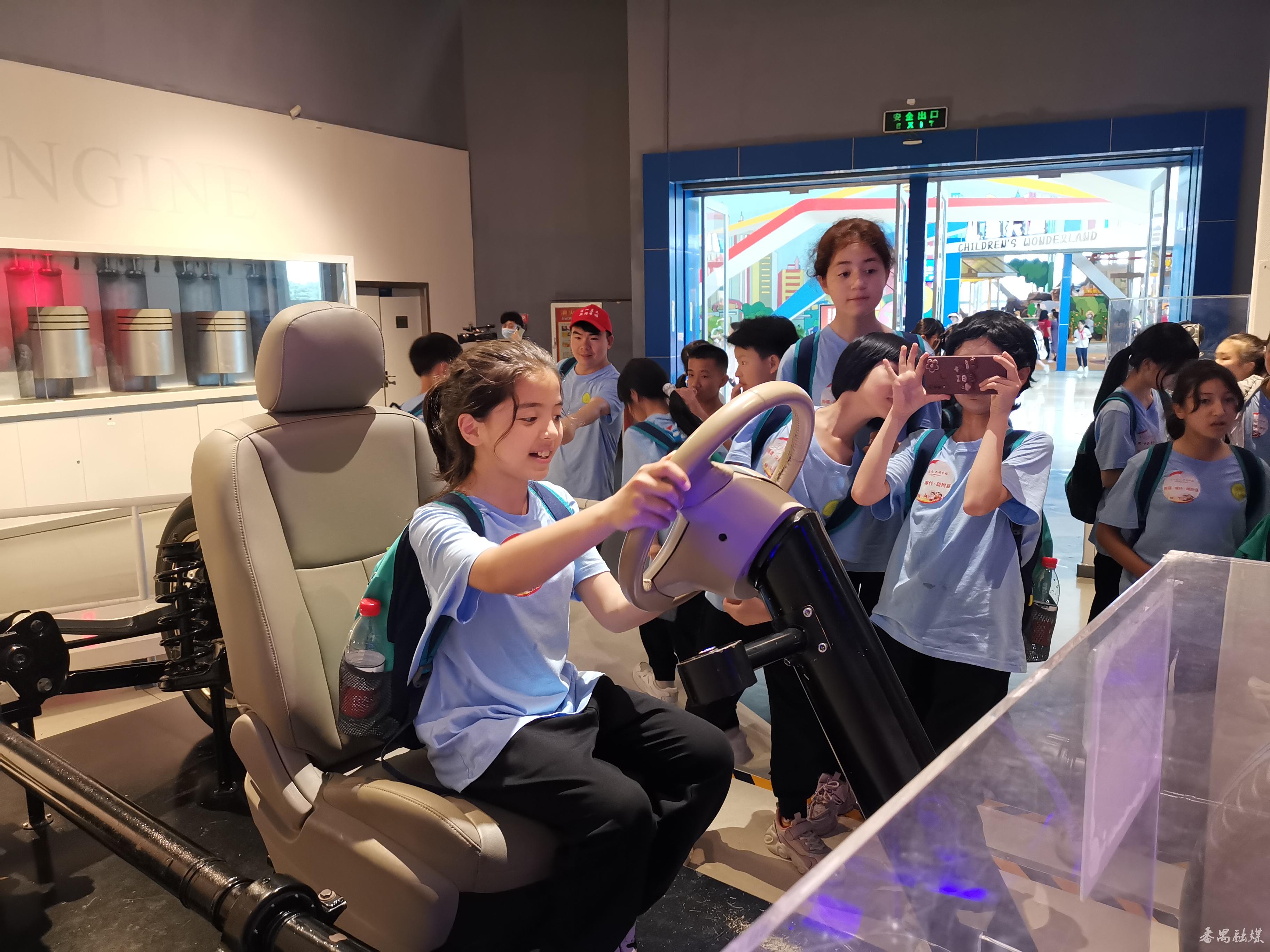 在广东科学中心,老区的孩子们参观了实验与发现、交通世界、飞天之梦等科技展馆,观看了“党领导下的科学家”主题展览。在交通世界展馆,孩子们饶有兴趣地参观了轨道交通技术在城市建设的应用,体验了模拟汽车驾驶的乐趣,观看了机器人表演;在飞天之梦展馆,孩子们观看了航空航天科技成果展示和科普知识展览,并参与科技互动游戏,有趣好玩的科普游戏让老区的孩子们近距离感受到科技的魅力,产生思想碰撞的火花。