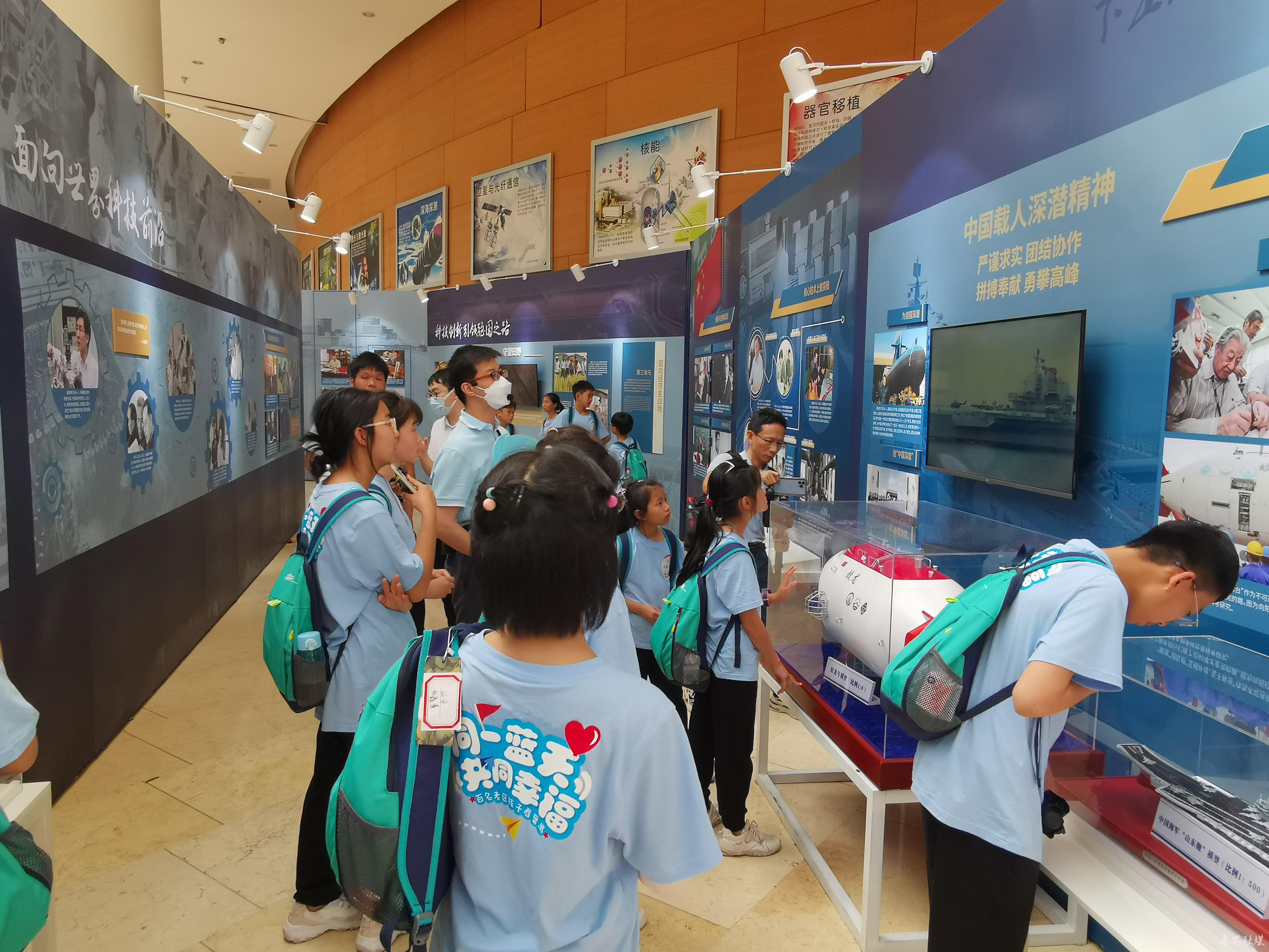 孩子们观看“党领导下的科学家”主题展览