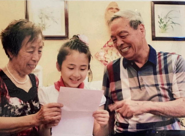 △浙江台州市椒江区学生张婧怡与爷爷奶奶分享习近平总书记的回信。