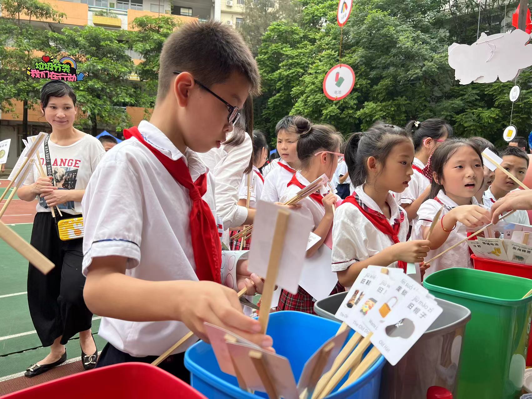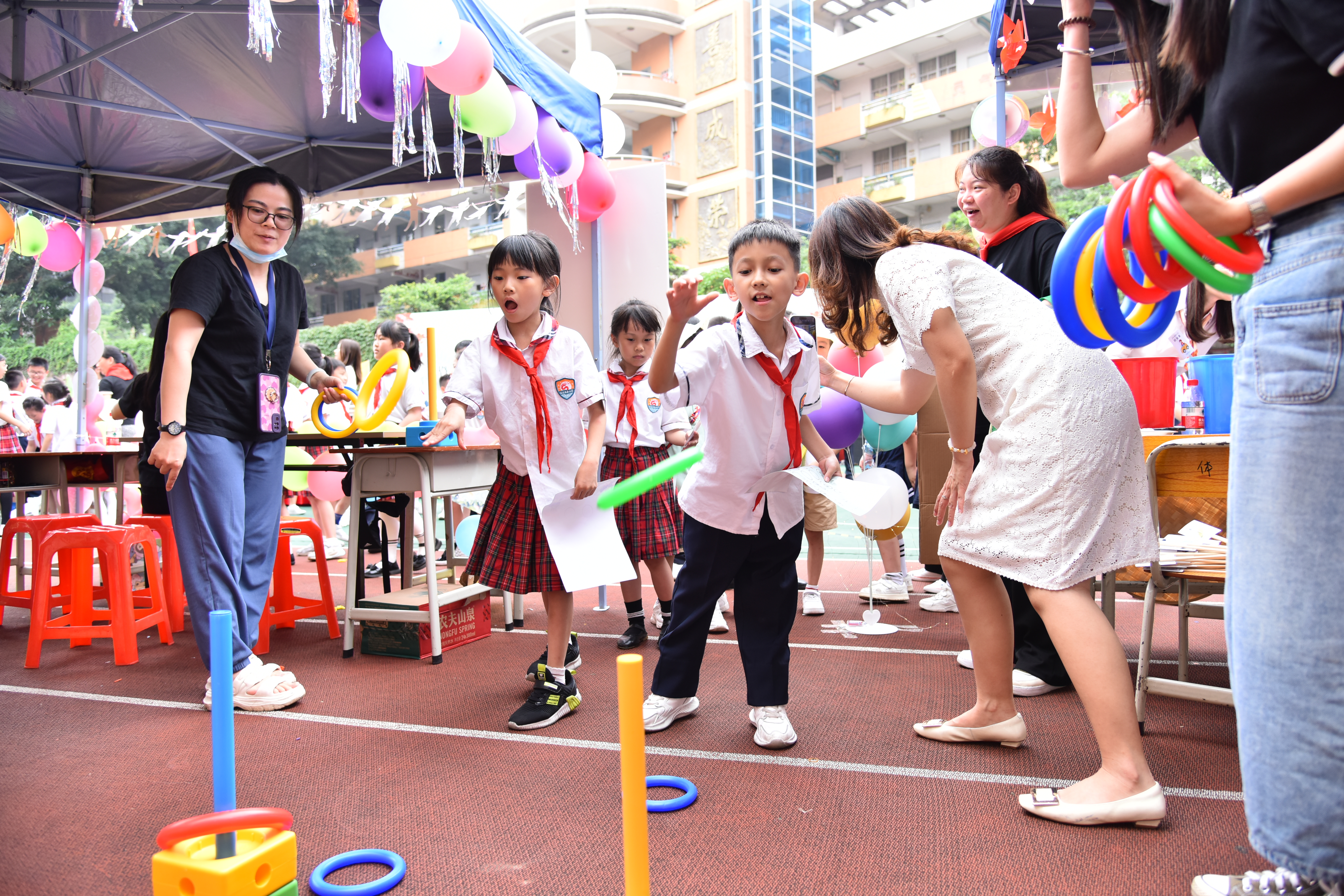 “一起趁墟喽!”随着小主持人的一声吆喝,学校第四届“粤趣槎溪,尚善潮墟”槎溪文化节热闹展开。“粤讲越掂”“劳动小能手”“母鸡下蛋”“龙珠出海”“趣味数字绕口令”“套圈游戏”“讲饮讲食”“开心跳跳虎”……在学校操场边,别开生面的摊位一字排开,被兴奋的同学们围得水泄不通,大家纷纷一展身手,体验传统文化,玩游戏闯关,赢得奖品。