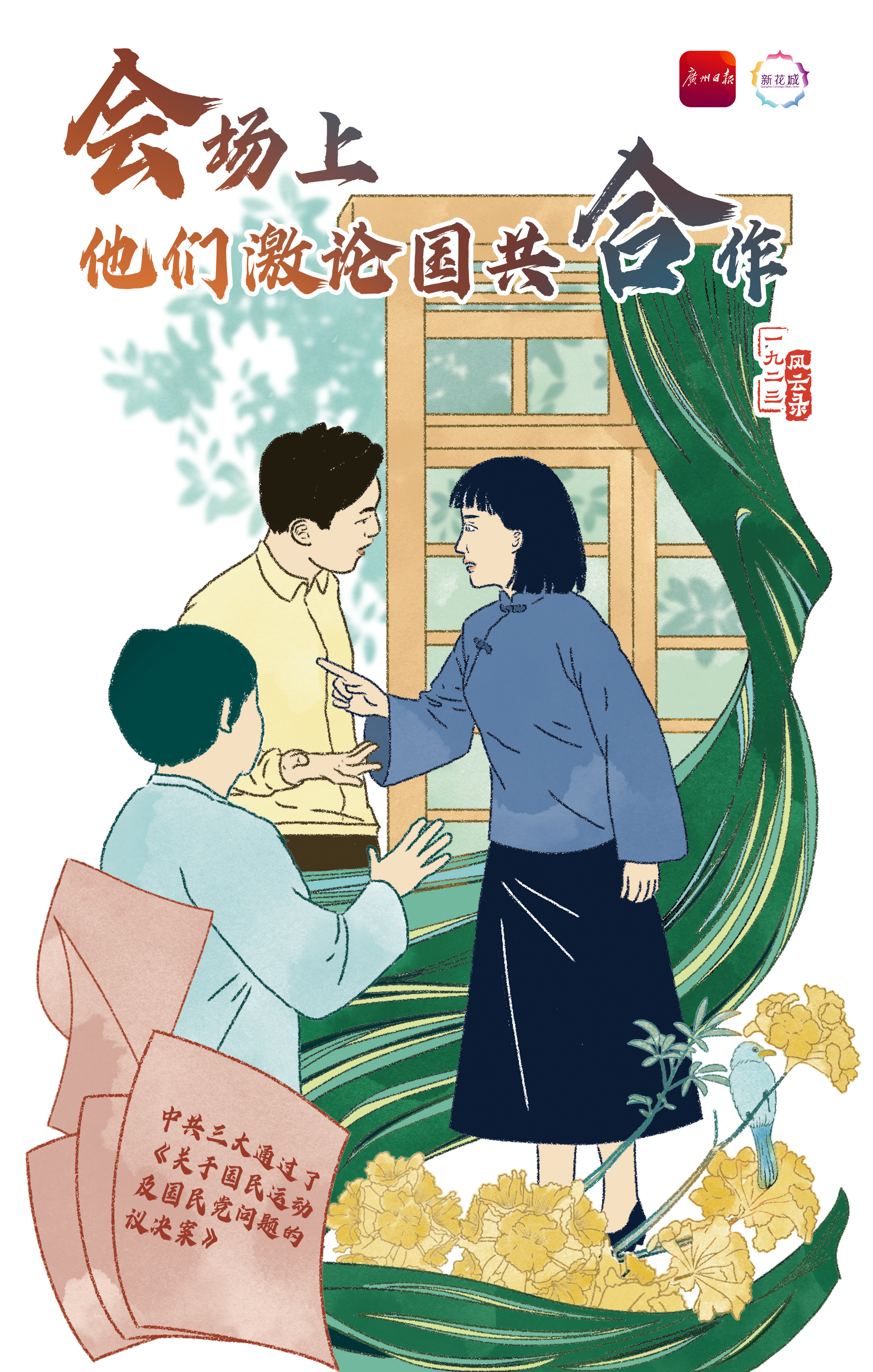 中共三大期间,蔡和森与他的爱人向警予在国共合作问题上产生分歧,散会后仍在激烈讨论。