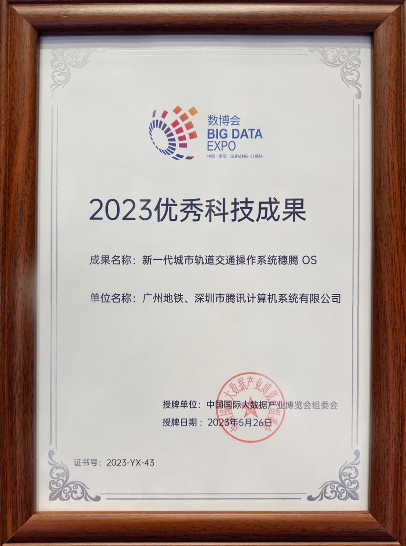 近日,在2023中国国际大数据产业博览会上,广州地铁集团与腾讯联合打造的新一代智慧轨道交通操作系统——穗腾OS,获评数博会“2023优秀科技成果”。数博会是全球首个以大数据为主题的博览会,由国家发展和改革委员会、工业和信息化部、国家互联网信息办公室共同主办。数博会优秀科技成果奖获得了国家科学技术奖励工作办公室批准,是目前国内唯一的大数据领域社会科技奖励。