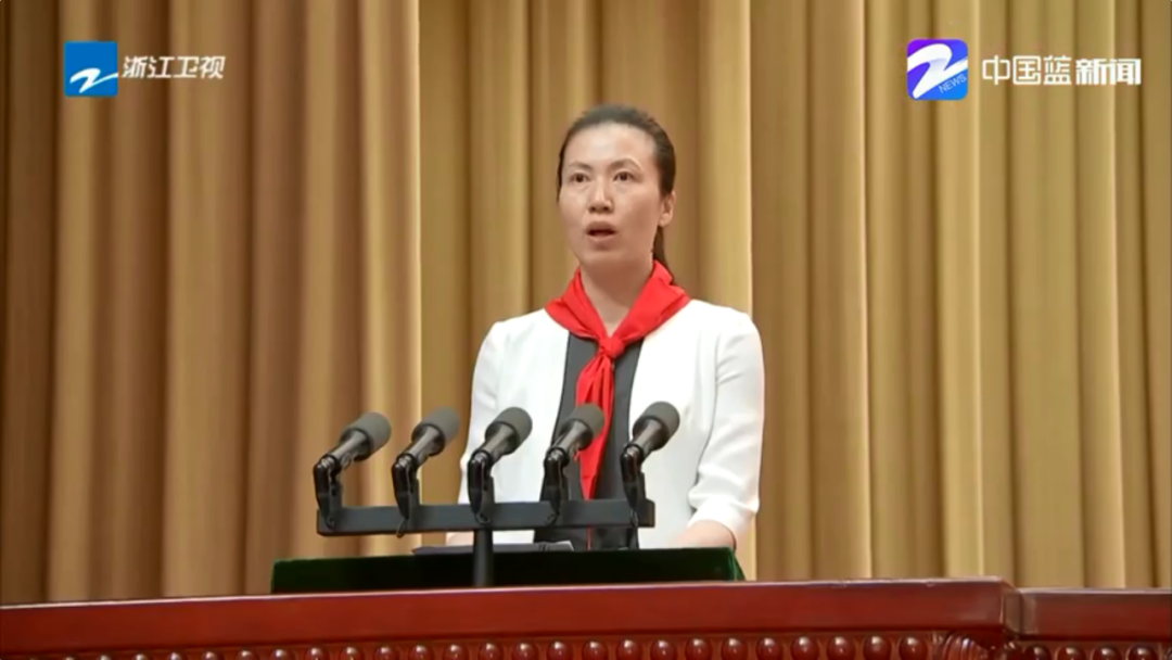 据浙江卫视报道,5月31日下午,中国少年先锋队浙江省第八次代表大会在浙江省人民大会堂开幕,团省委书记周苏红致辞。
