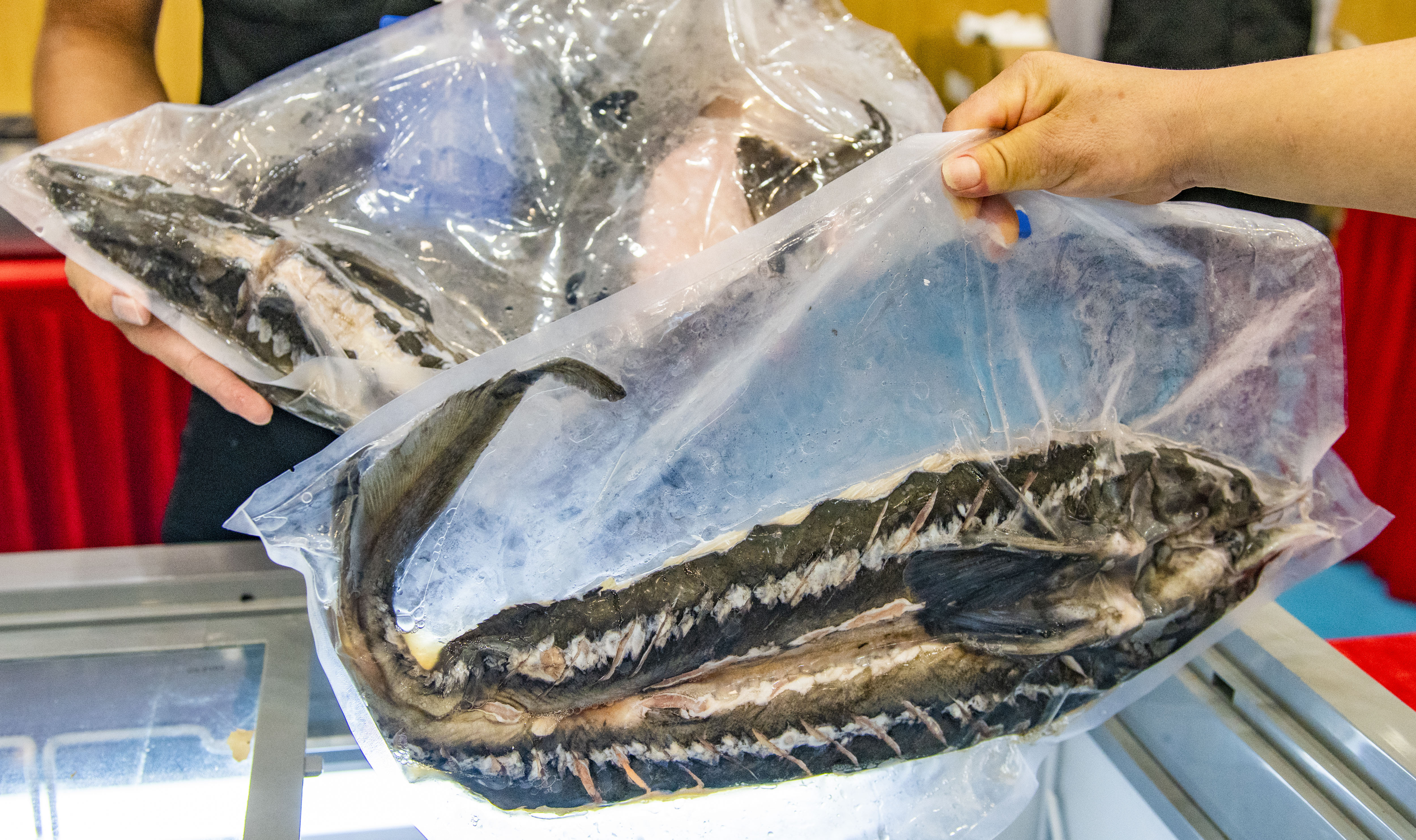 提起鲟(龙)鱼,大家或许有些陌生,但更为大家所熟悉的高端食品鱼子酱,主要指的就是鲟鱼鱼卵。“中国鲟鱼看贵州,贵州鲟鱼看黔南。”黔南惠水县水域面积广阔,水质好,无污染,为发展生态渔业提供了优良的水质资源,自20世纪末开始鲟鱼养殖以来,经过20多年,鲟鱼已成为惠水水产养殖的名牌产业。“鲟鱼是冷水鱼,必须在20度左右的水中养殖,肉鲜、骨软。我们会先用零下80度的低温极速冷冻锁鲜,再冷链运输,最大限度保留鱼肉的鲜美。”来自惠水的养殖户何大庆向记者介绍。“好山好水养好鱼,鲟鱼浑身是宝……”惠水鲟鱼养殖协会会长张翠兰现场推介,她从1998年开始投身冷水鲟鱼养殖,其公司生产的鲟鱼鱼子酱已经出口到日本、俄罗斯。