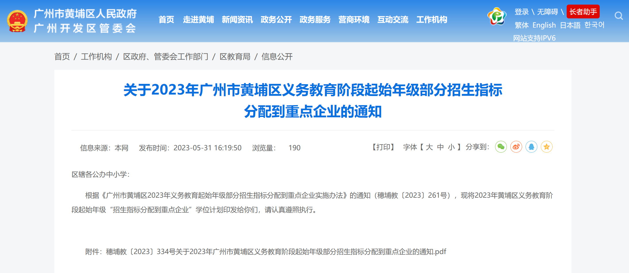 据悉,审核通过的申请重点企业入学指标的企业员工,于2023年6月1日-6月5日登录“广州市黄埔区义务教育起始年级重点企业指标招生系统”填报志愿学校。