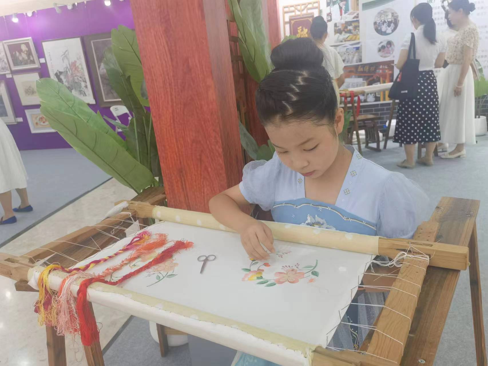 安静文雅的“绣娘”,现场有板有眼地做起了刺绣